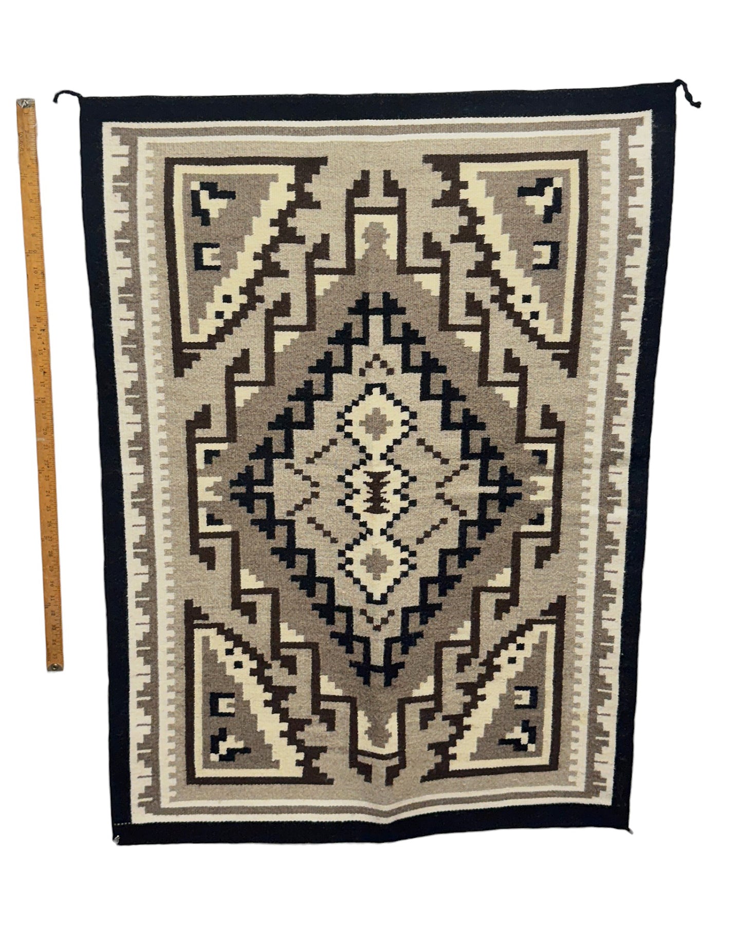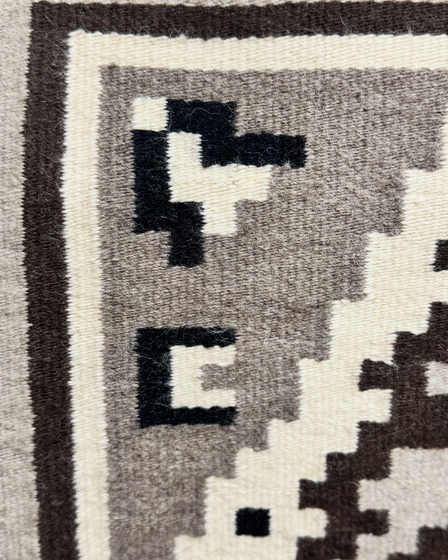 The favorite weaving for many collectors is the Two Grey Hills. Famous because of the natural sheep colors and the stiff feel of churro wool. Many Two Grey Hills will have very complex patterns, and it takes a significant amount of time to realize all of the hidden symbols. Patterned after the classic Diamond designs this is definitely a style you need in your growing collection of rugs.