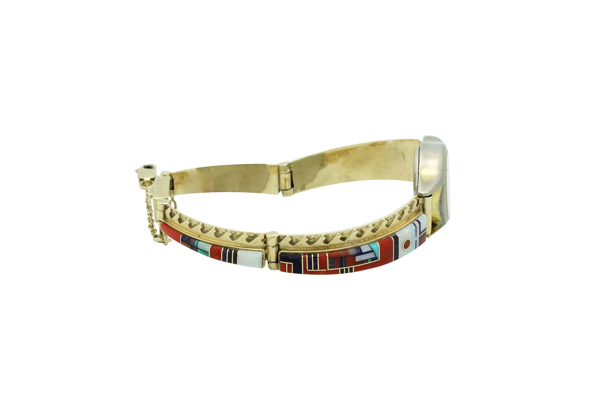Julian Arviso, Watch Bracelet, 14k Gold, Multi Stone, Navajo Handmade, 7