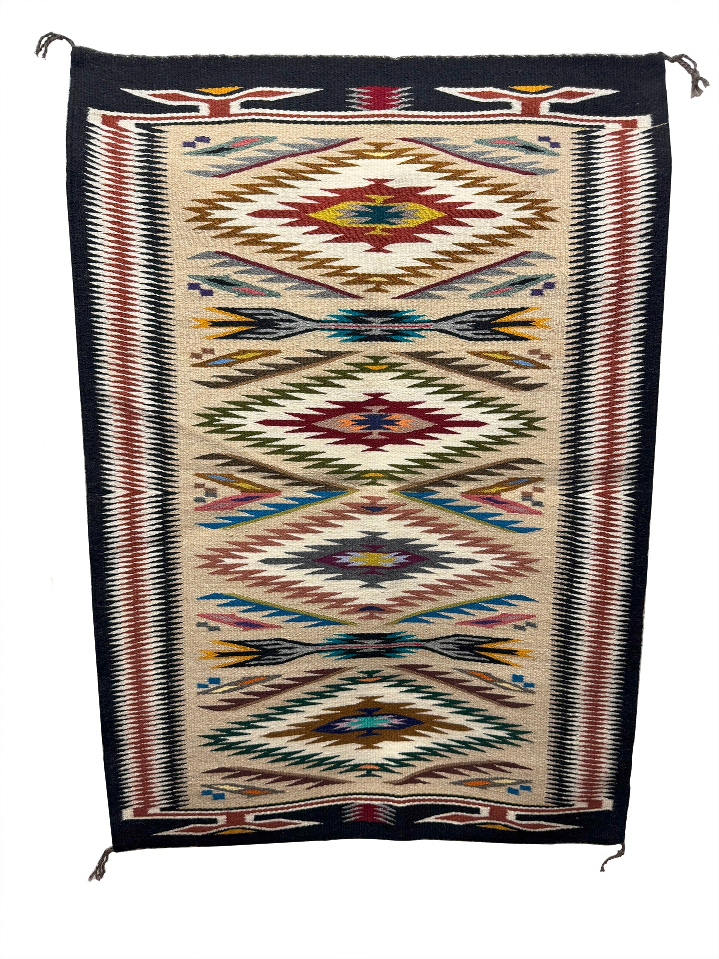 Before the trains started coming to this part of the world and businesses like the Fred Harvey Company started selling Navajo jewelry to the masses, most people back east didn't know anything of the Navajo. Traders like JB Moore would be one of the first to introduce the art of the Navajo to collectors back east, rugs not silver. He put together a catalog of different weavings that would be sold in large quantities. More Traders would begin to introduce Navajo weavings and even influence certain styles. Today this tradition is carried on by the Trading Posts. We have a large collection of weavings from classic Ganado Reds to Germantown Revivals. Also, old antiques that have the character that goes with age to the new contemporary weavings. Enjoy looking through our online collection and remember if you don't see what you are looking for, we have many more in the Post.