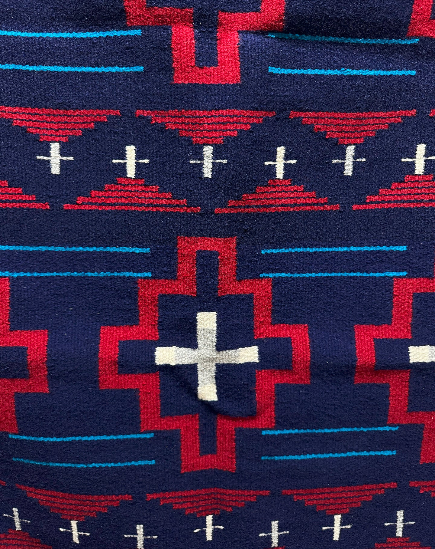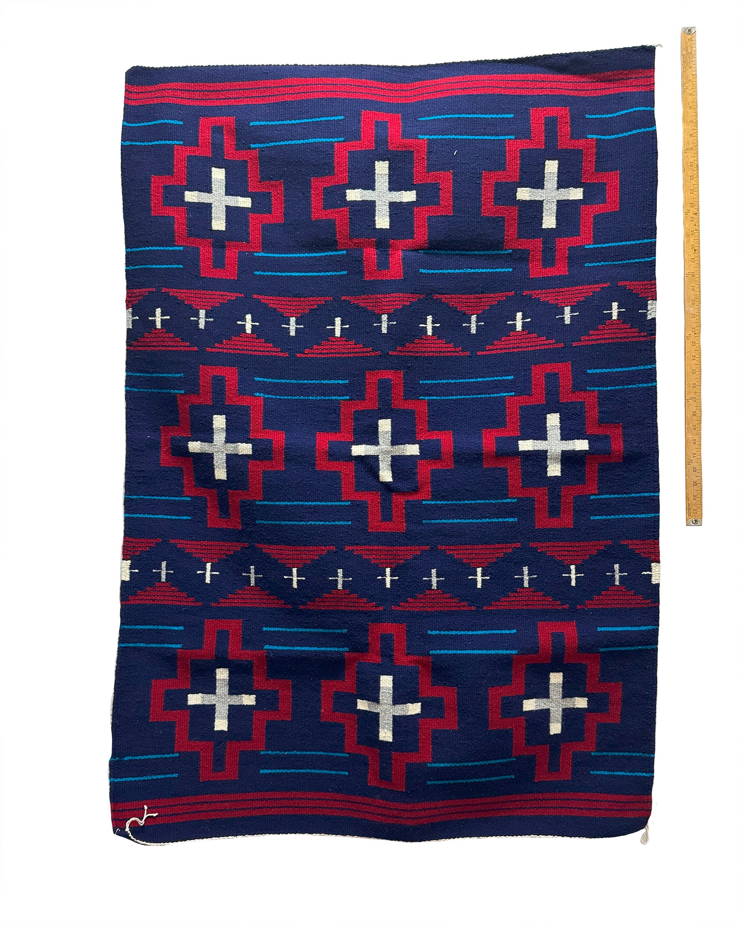 The Navajo would have a trade system set up with surrounding communities and distant communities that included tribes from the Plains. That is where most scholars feel they were introduced to the Chief Blanket, since the Navajo do not have Chiefs. The blanket is identified by phases, and the contemporary weavings borrow from all of those, plus the addition of freelance designs. We have a large collection of Chief Blankets on the online Trading Post so make sure you check them all out.