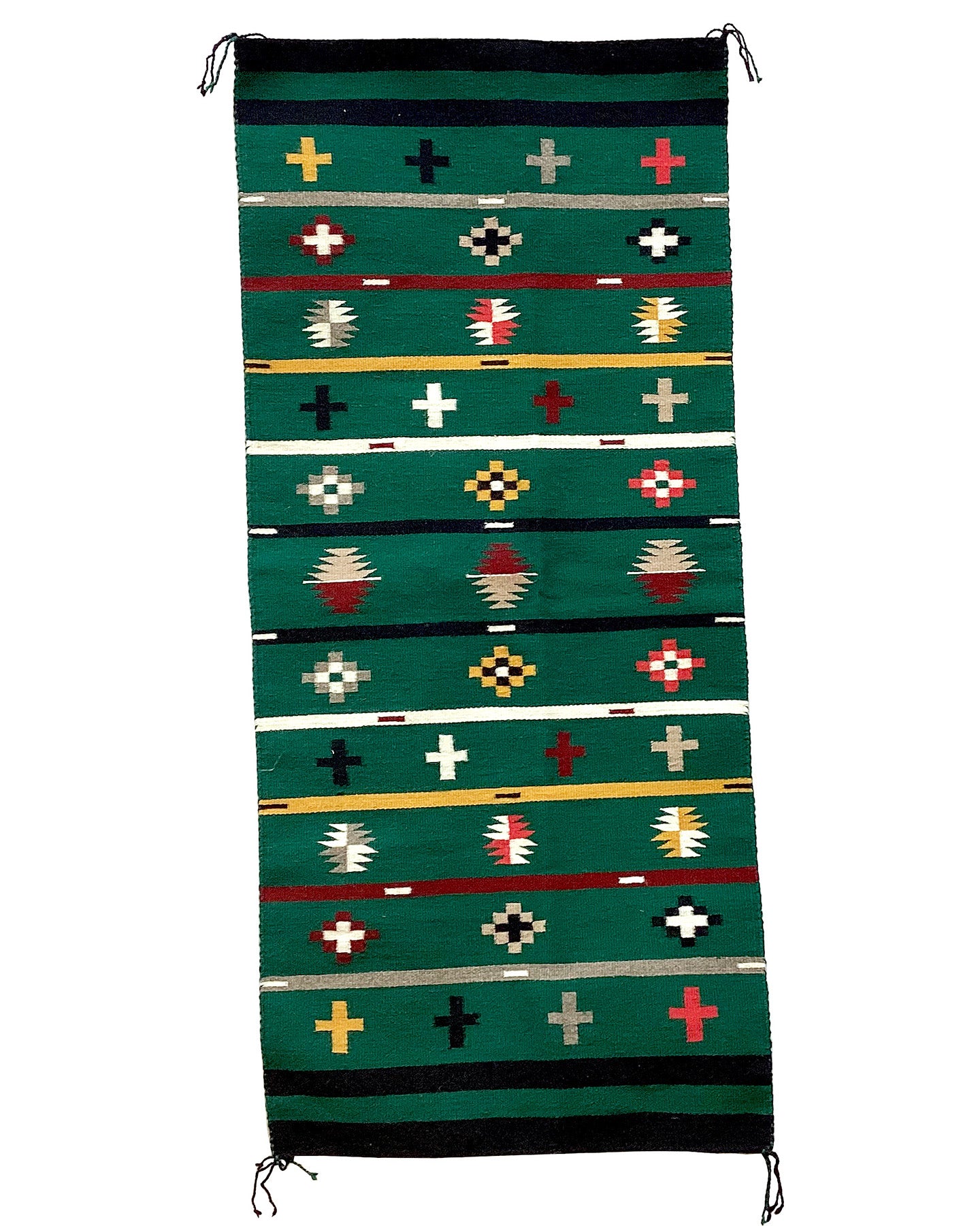 Bessie Yazzie, rug, Chief, Runner, Navajo Handwoven, 26.5" x 56.5"