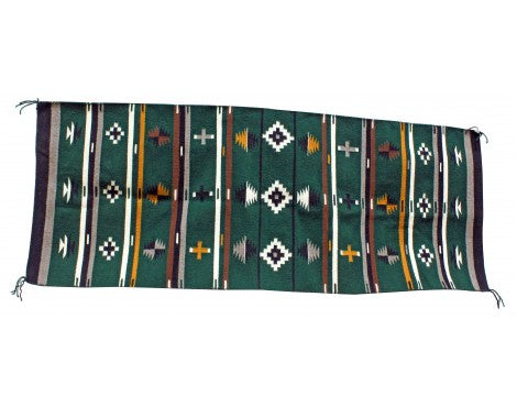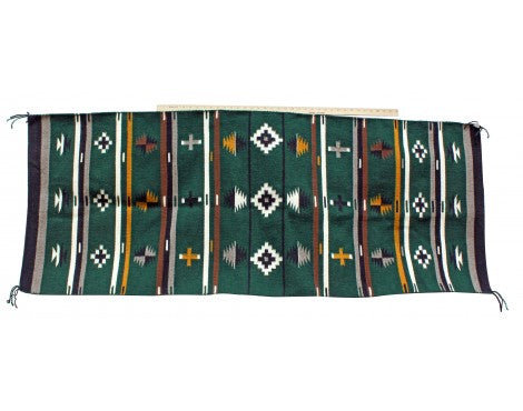 Bessie Yazzie, Green Chinle Pattern Rug, Navajo Handwoven, 28 in x 68 in