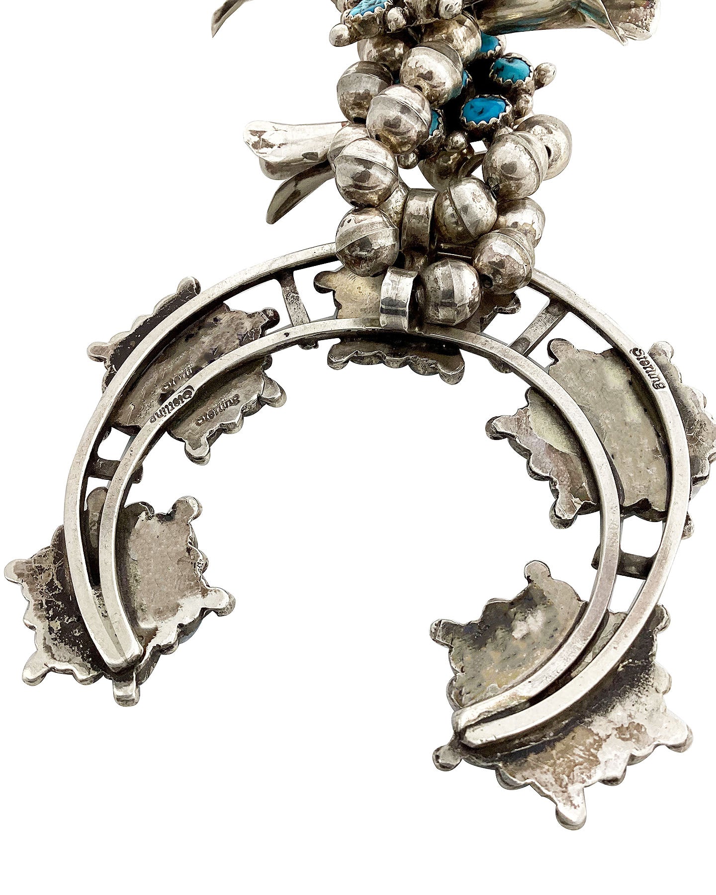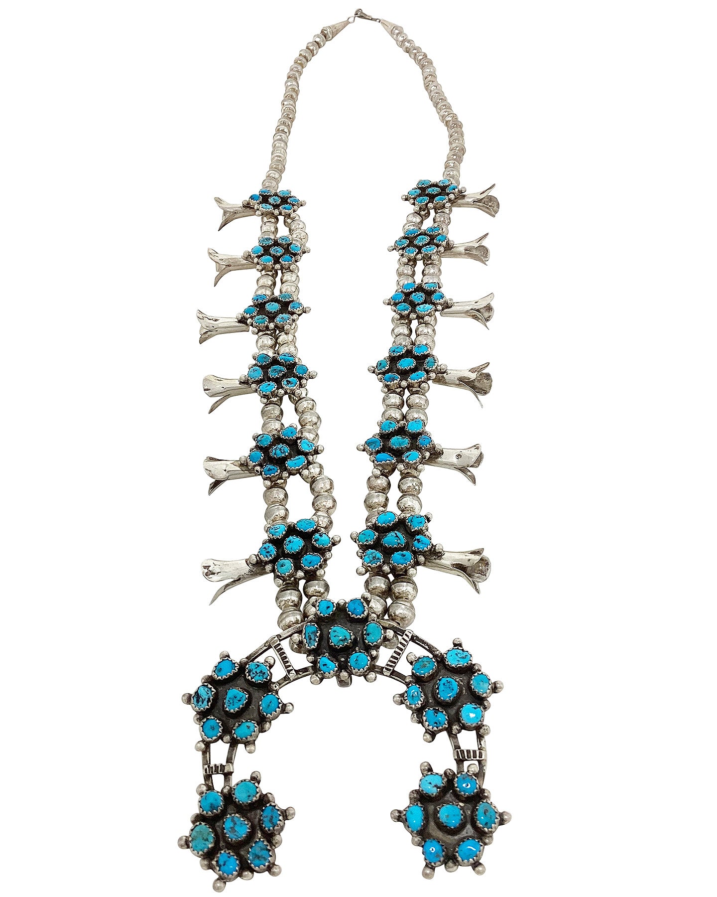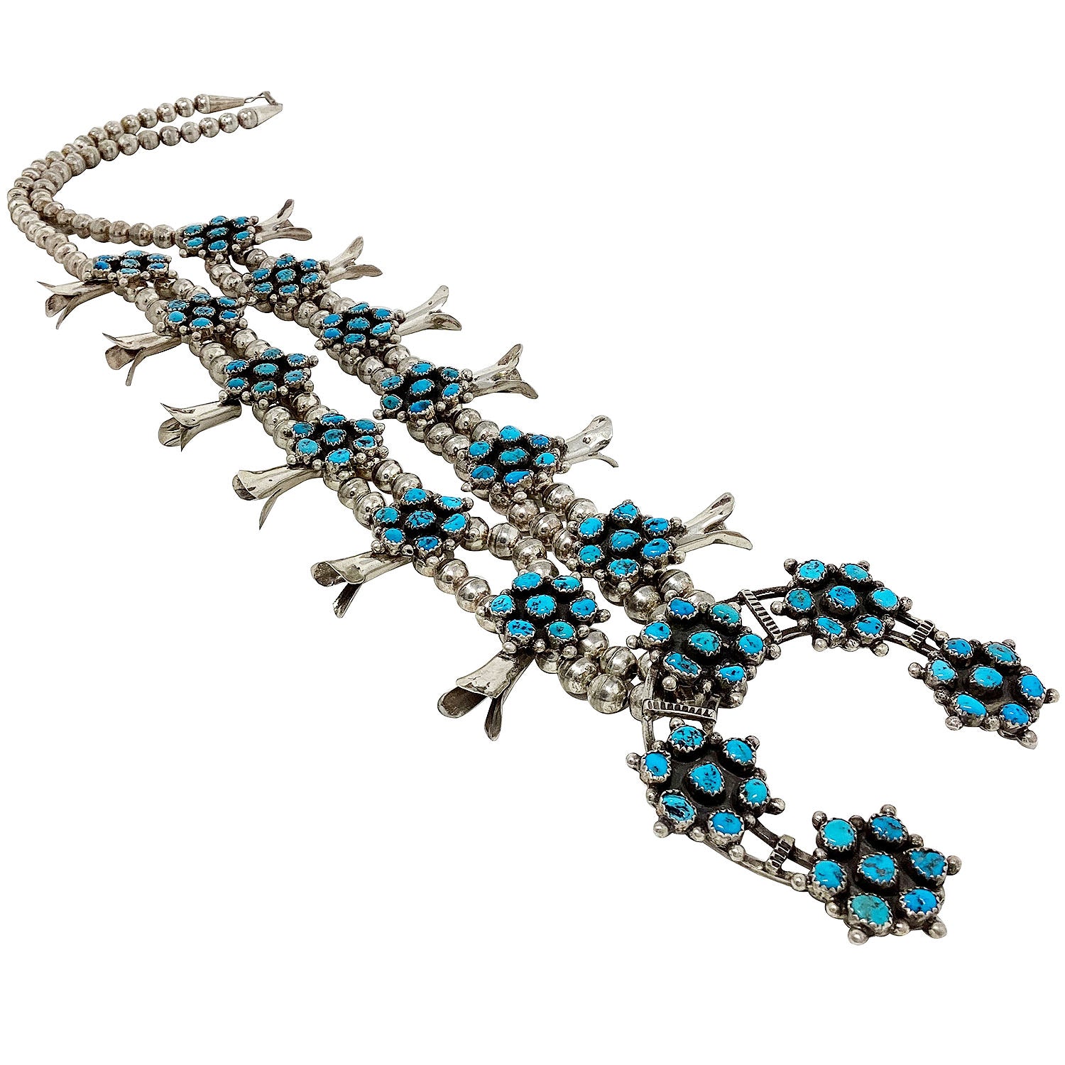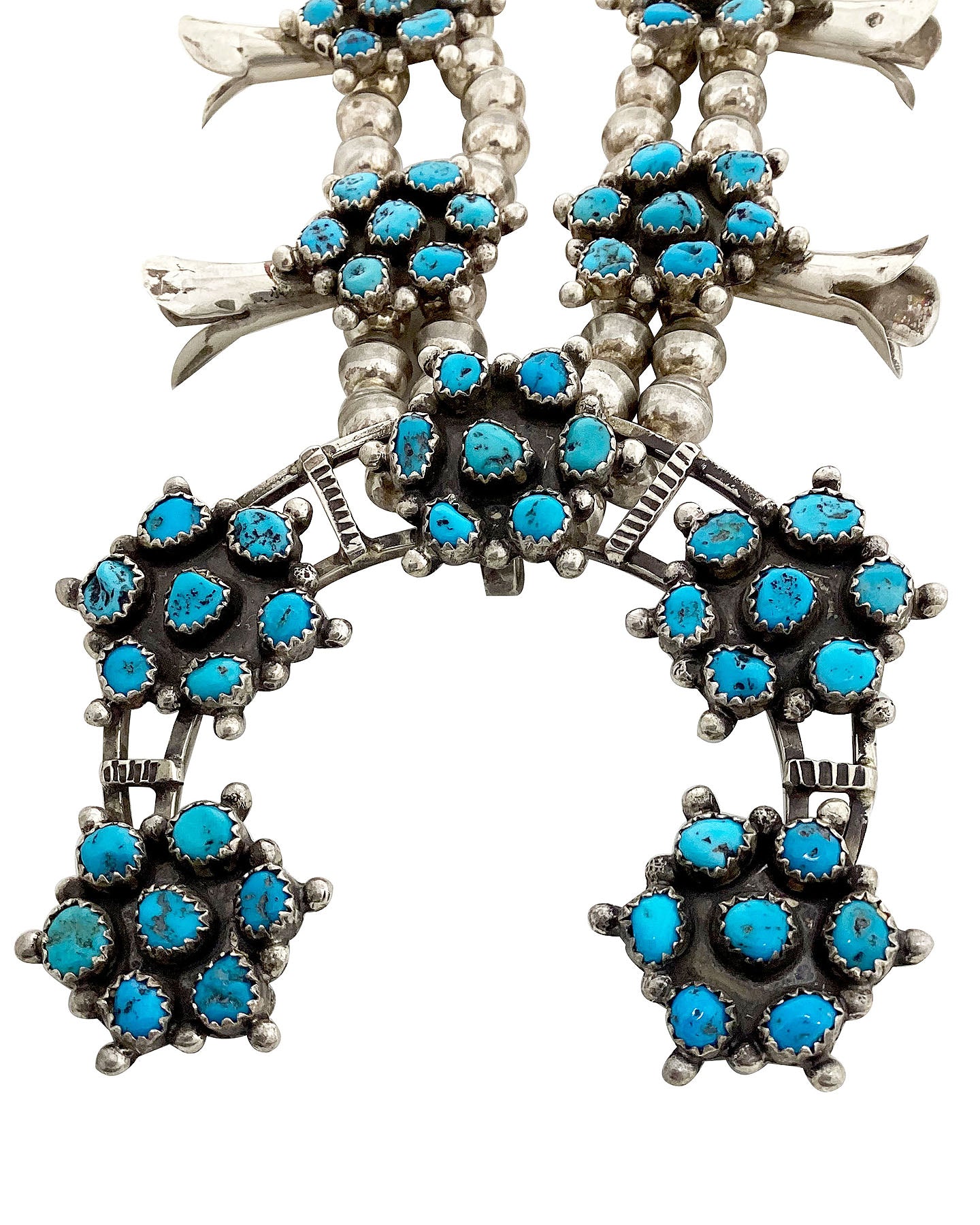 Navajo Squash Blossom Necklace, Sleeping Beauty Turquoise, Circa 1980s, 30"