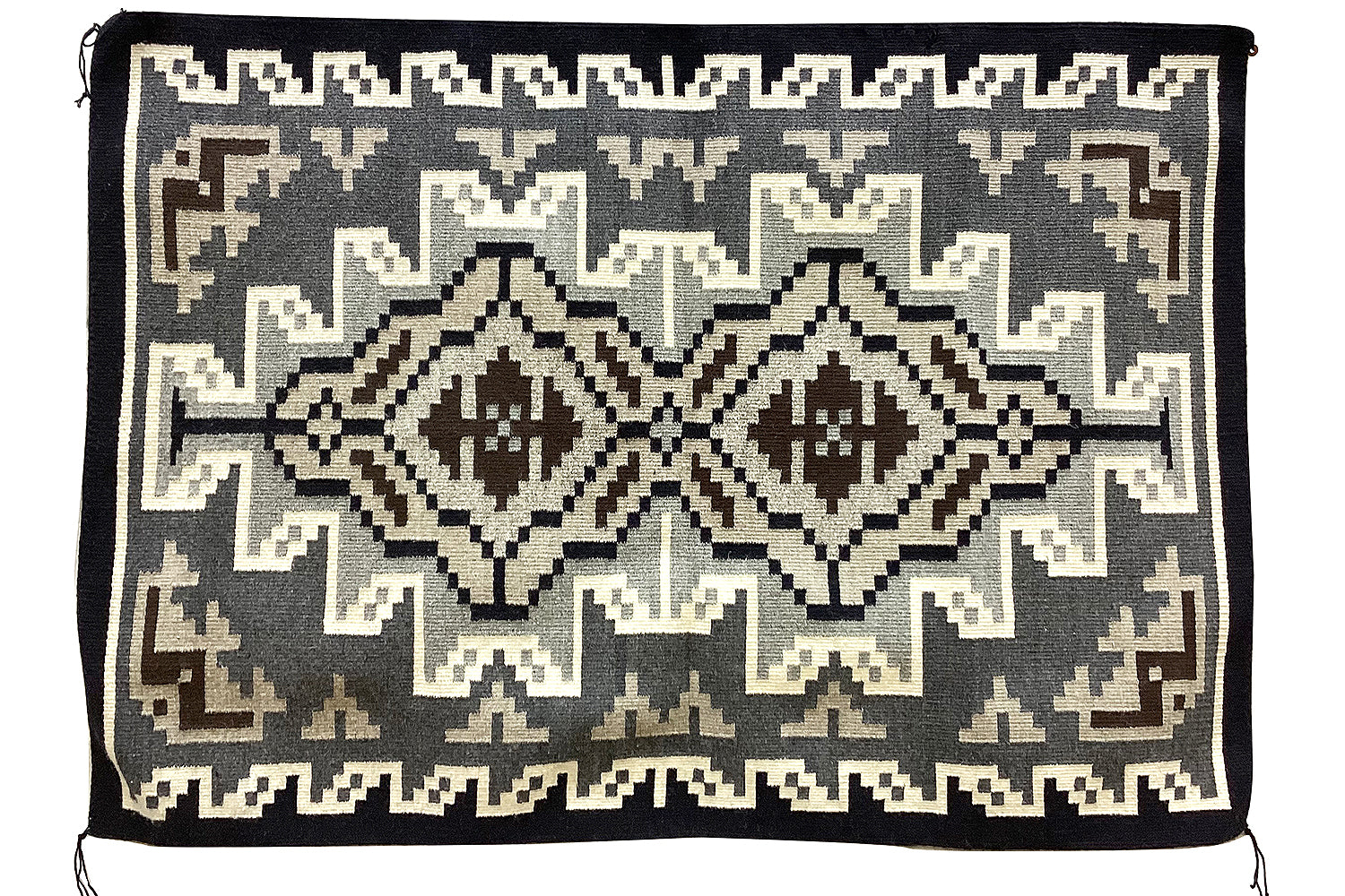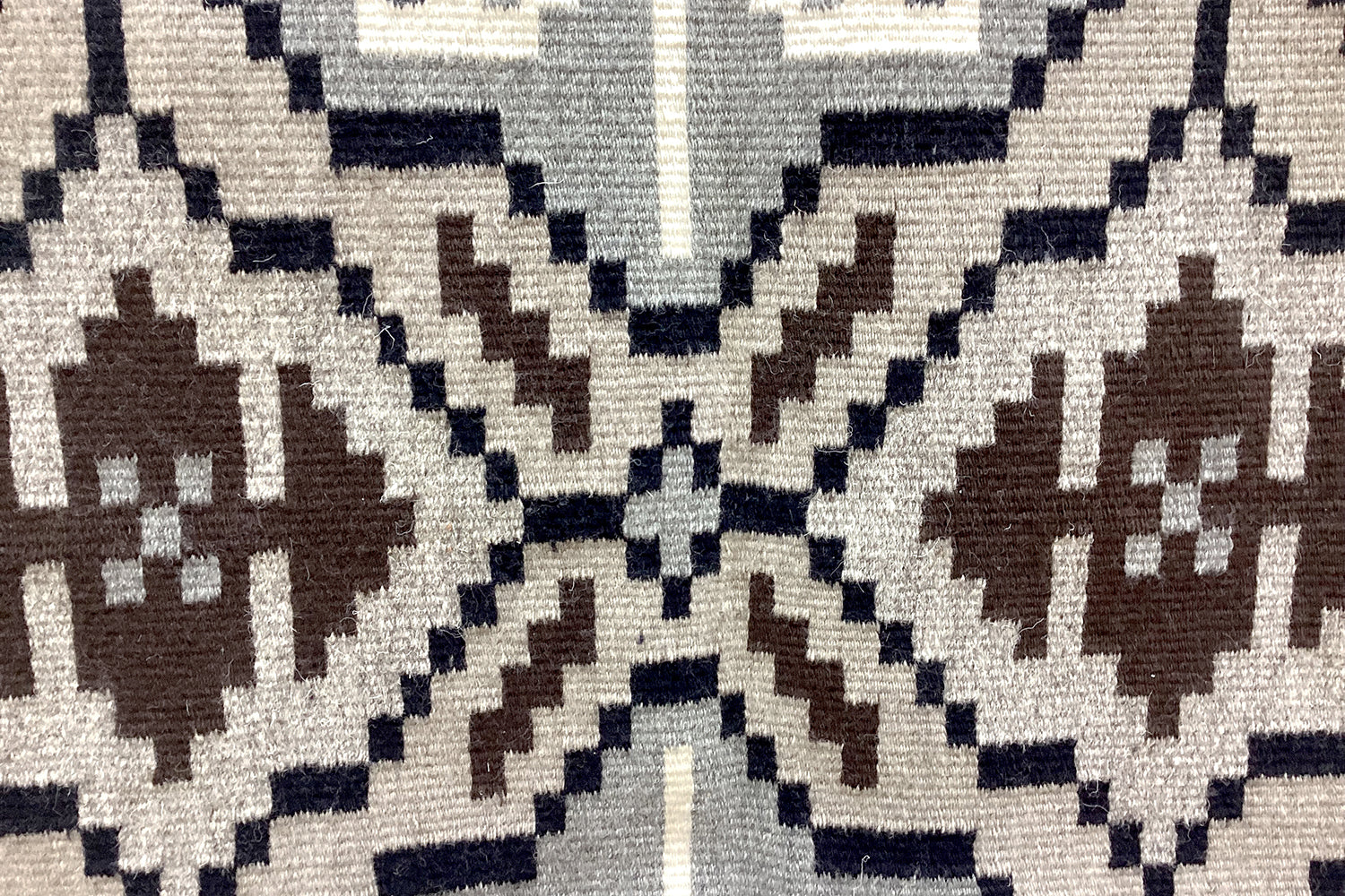 The favorite weaving for many collectors is the Two Grey Hills. Famous because of the natural sheep colors and the stiff feel of churro wool. Many Two Grey Hills will have very complex patterns and it takes a significant amount of time to realize all of the hidden symbols. Patterned after the classic Diamond designs this is definitely a style you need in your growing collection of rugs.