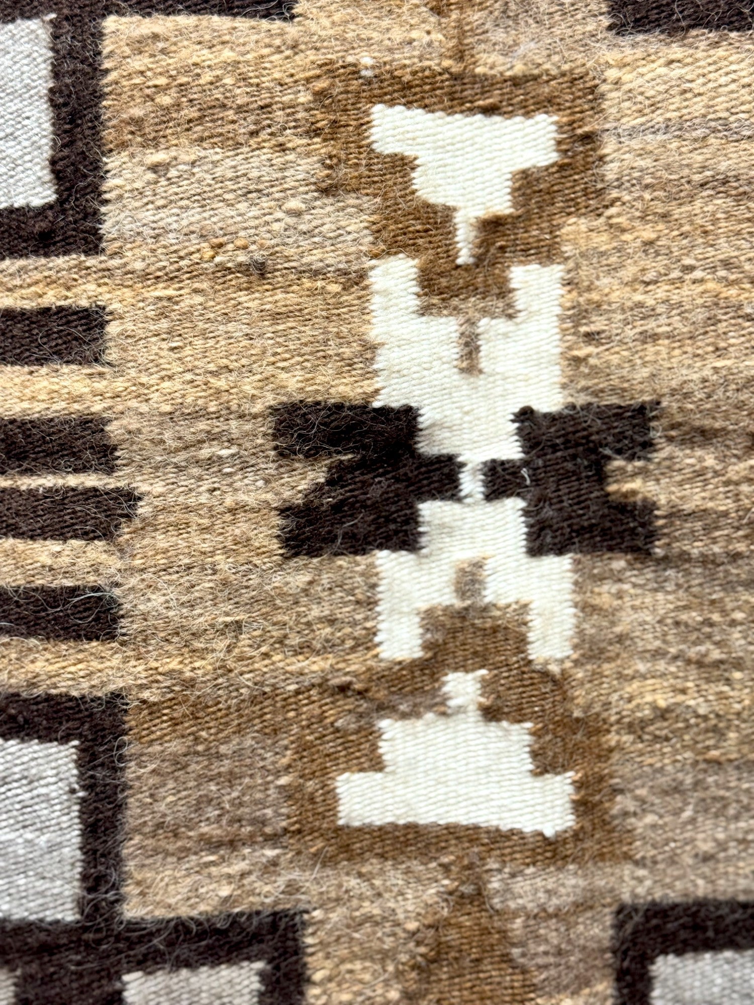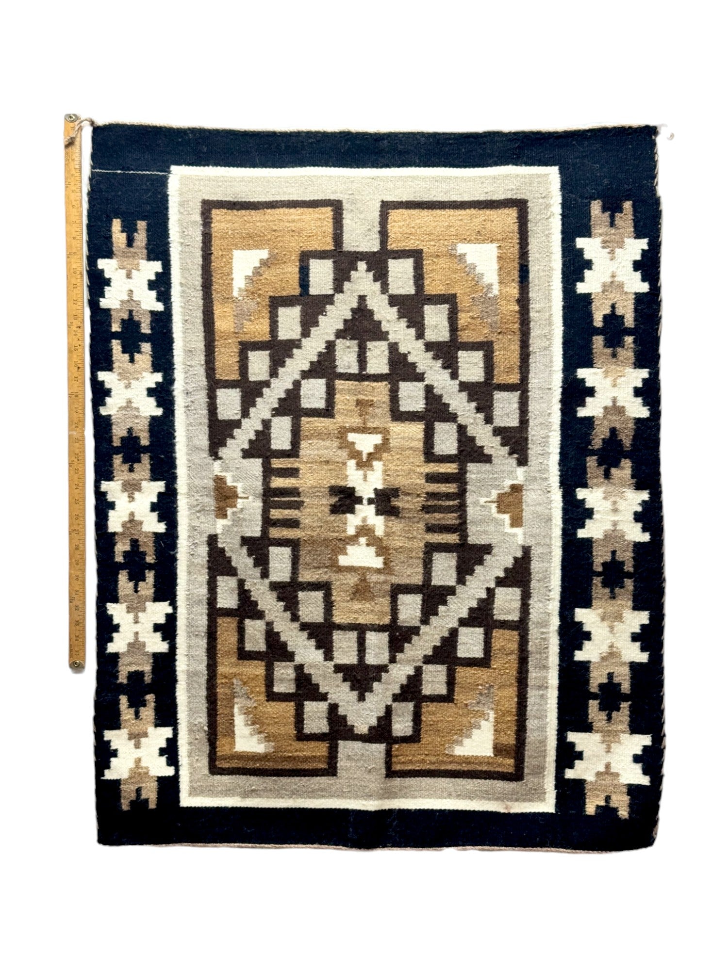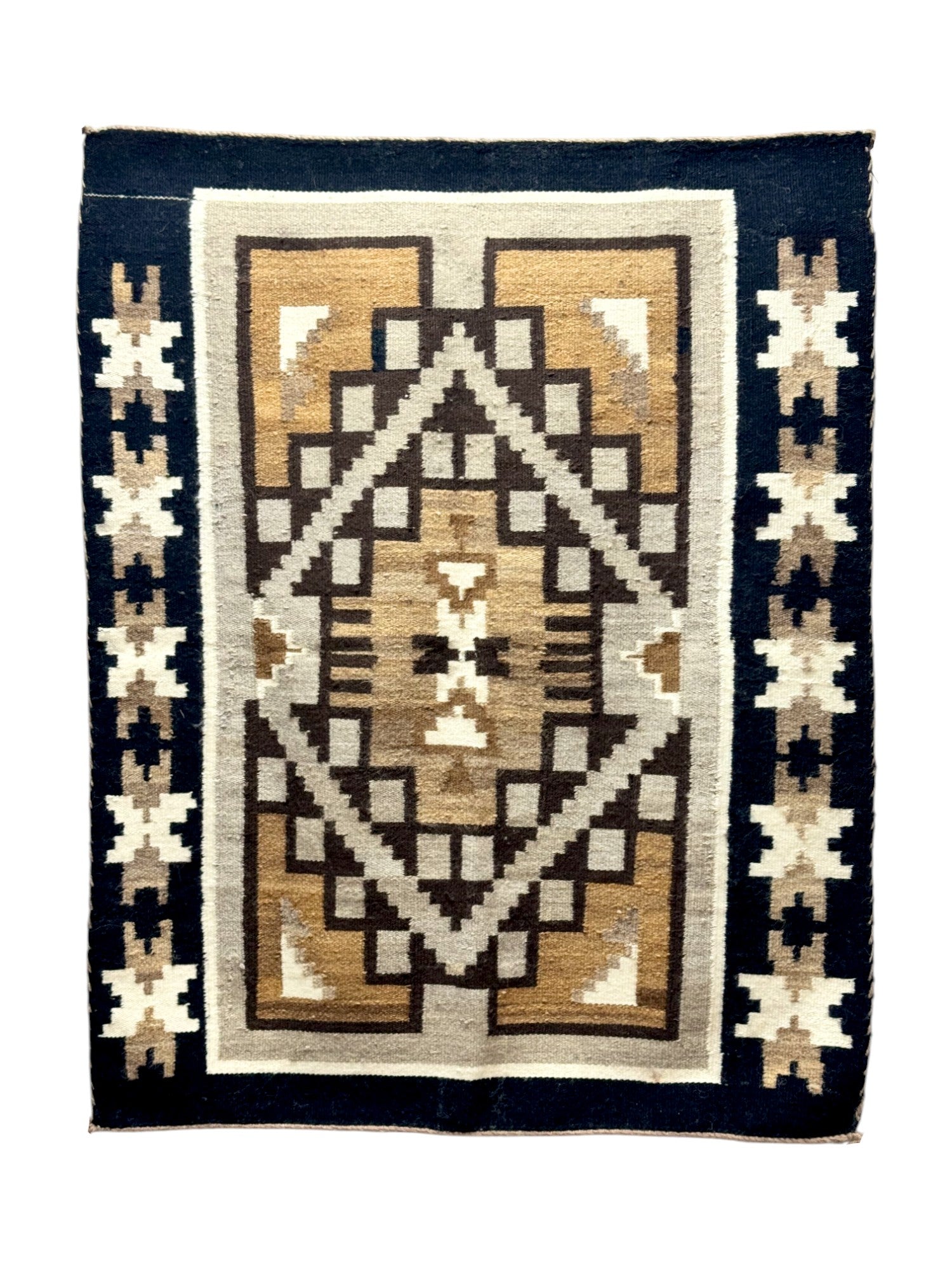 The favorite weaving for many collectors is the Two Grey Hills. Famous because of the natural sheep colors and the stiff feel of churro wool. Many Two Grey Hills will have very complex patterns, and it takes a significant amount of time to realize all of the hidden symbols. Patterned after the classic Diamond designs this is definitely a style you need in your growing collection of rugs.