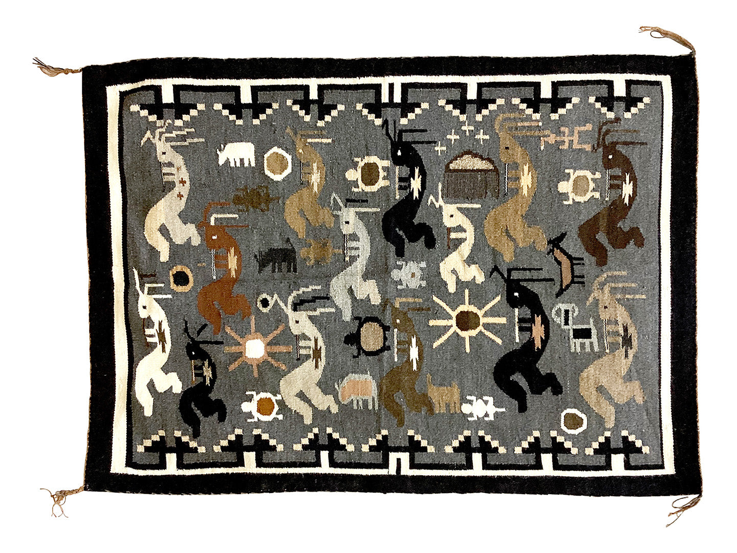 Esther Etcitty, Kokopelli Pictorial, Navajo Handwoven Rug, 42” x 58”
