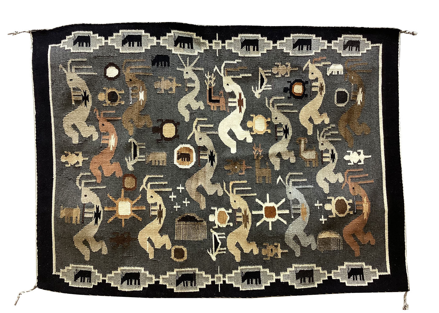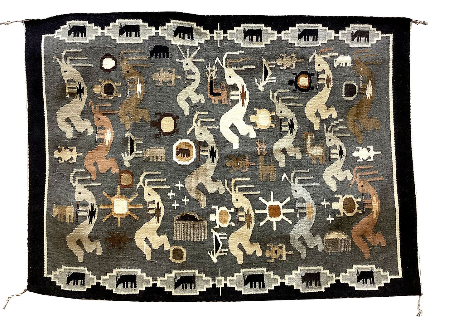 Esther Etcitty, Kokopelli Pictorial, Navajo Handwoven Rug, 54” x 42”