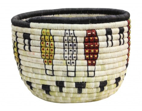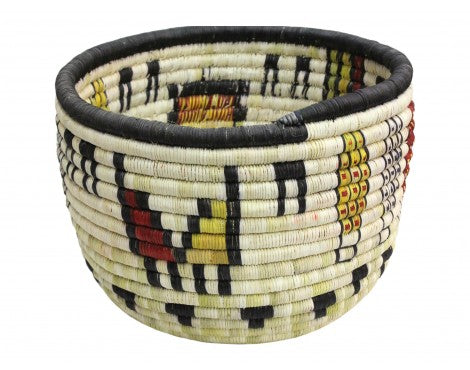 Hopi coil basket weaving isn't something you learn overnight. All of the weavers we have baskets from grew up in a house that wove baskets, something that was introduced to them from an early age. You will find these basket weavers on the Second Mesa. We have an interview with Irene Lamayaktewa who talked a little bit about the colors you find and the materials in coil basket."We make the coil basket from straw and yucca that we pick from areas around Hopi. Many of the colors are from the yucca plant, yellow comes from yucca being harvested in winter, the white is summer, and the green can be picked aany time of the year. Also, we will use sunflower for the black and Hopi Tea (hohocy) for the red."Make sure you look through our online collection. We have both baskets and plaques.
