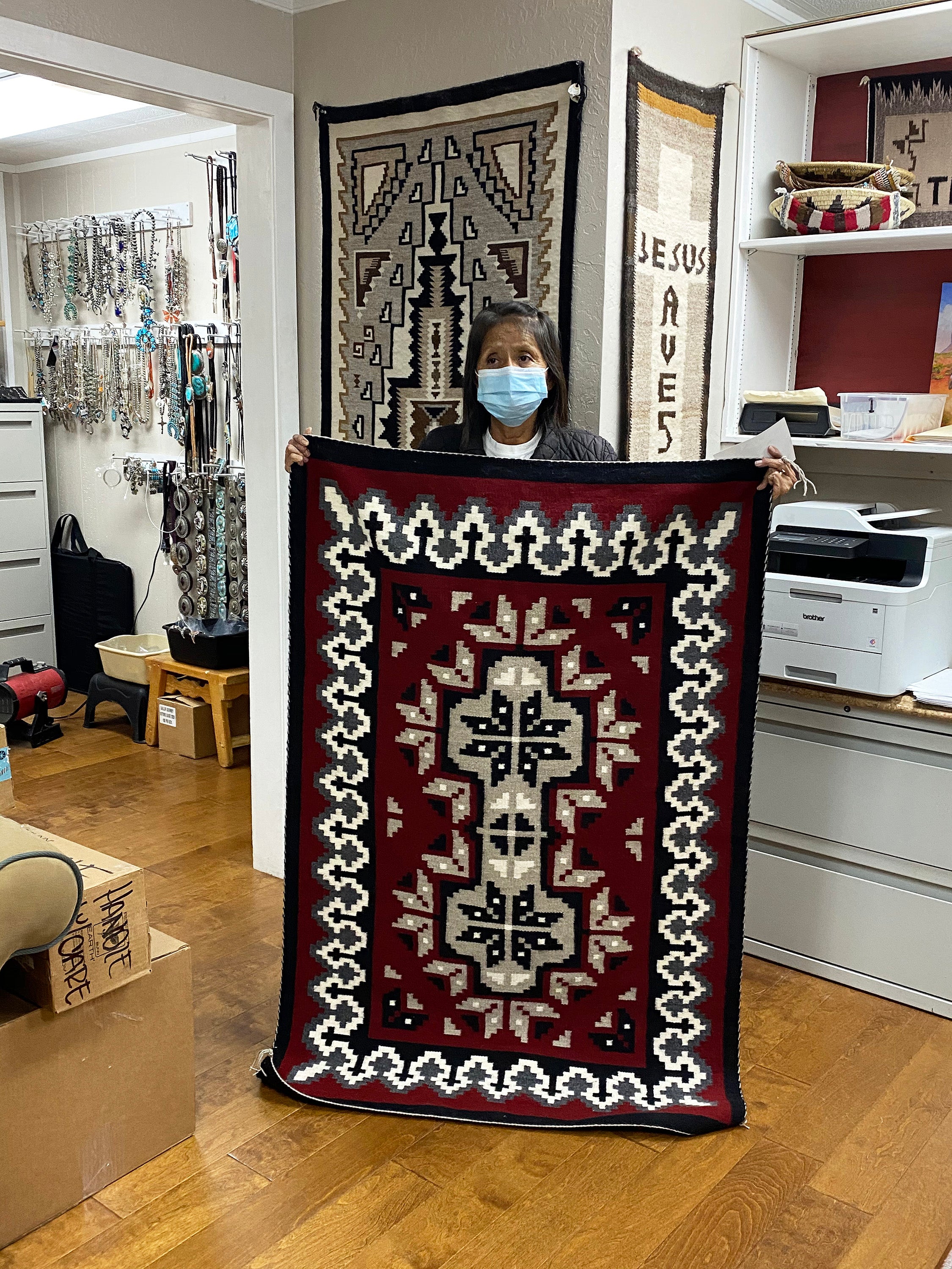 Traders like JB Moore would be the first to introduce the art of the Navajo to collectors back east, but it was rugs (not silver) that first captured the imaginations collectors and decorators. Following Moore's suit, other traders would begin to market Navajo weaving, even influencing many of the well-known styles. Today styles are not defined by regions, but perfected by dedicated weavers from all parts of the Navajo Nations. We have put together a large collection of rugs on our online Trading Post and hope you take time to look through them all. Hopefully, you will find the perfect rug. Ganado Red might be the most famous of all Navajo weavings. Lorenzo Hubbell's life work was to promote Native American art. He would employ many different artists and the Ganado Red would become his weavers signature look. It is known for its striking red color that showcases a center diamond pattern. We have a large collection of Ganado Reds so make sure you look them all.