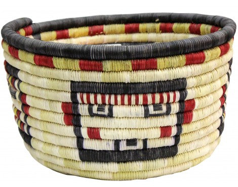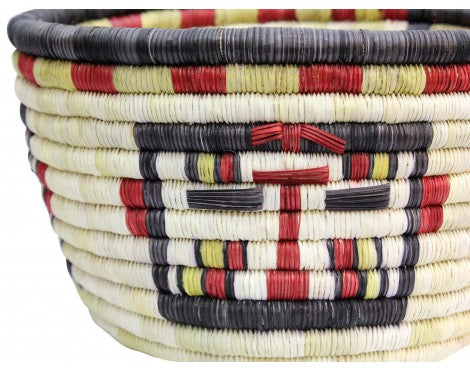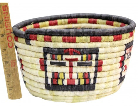 Hopi coil basket weaving isn't something you learn overnight. All of the weavers we have baskets from grew up in a house that wove baskets, something that was introduced to them from an early age. You will find these basket weavers on the Second Mesa. We have an interview with Irene Lamayaktewa who talked a little bit about the colors you find and the materials in coil basket."We make the coil basket from straw and yucca that we pick from areas around Hopi. Many of the colors are from the yucca plant, yellow comes from yucca being harvested in winter, the white is summer, and the green can be picked aany time of the year. Also, we will use sunflower for the black and Hopi Tea (hohocy) for the red."Make sure you look through our online collection. We have both baskets and plaques.