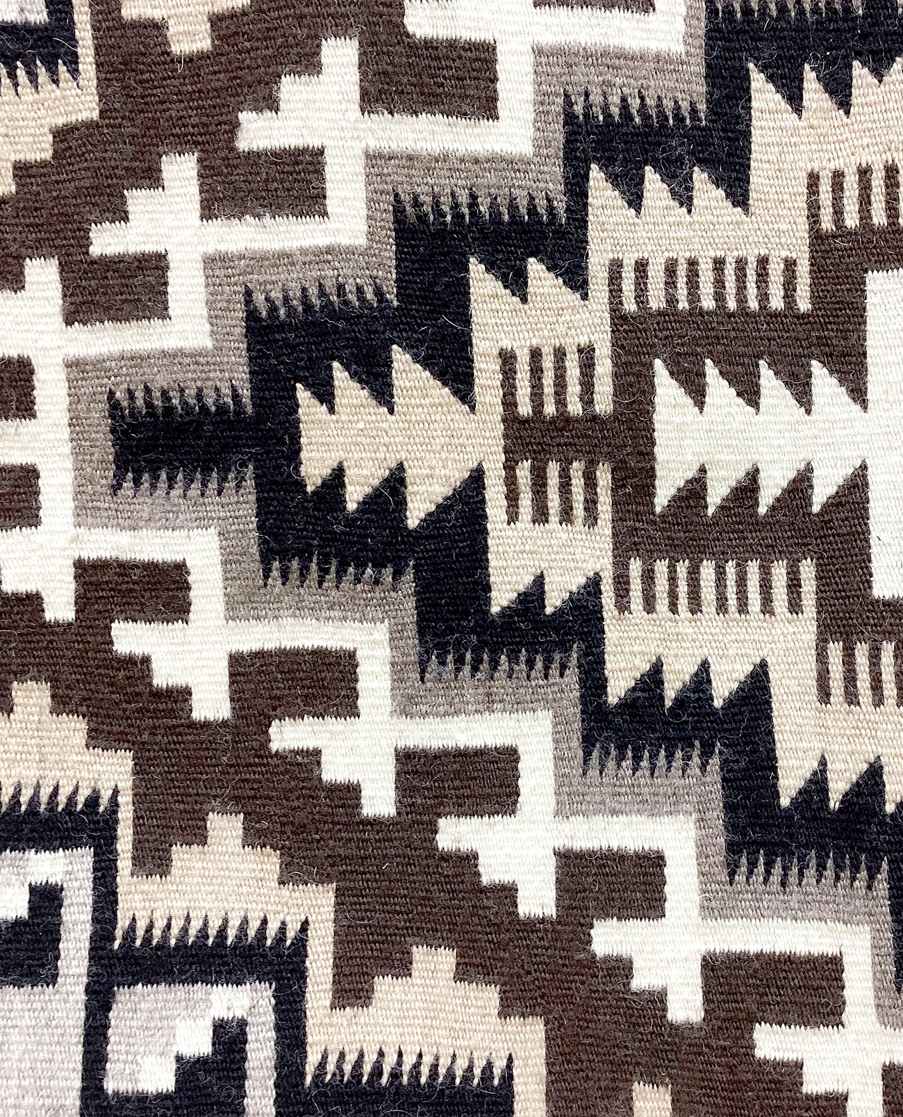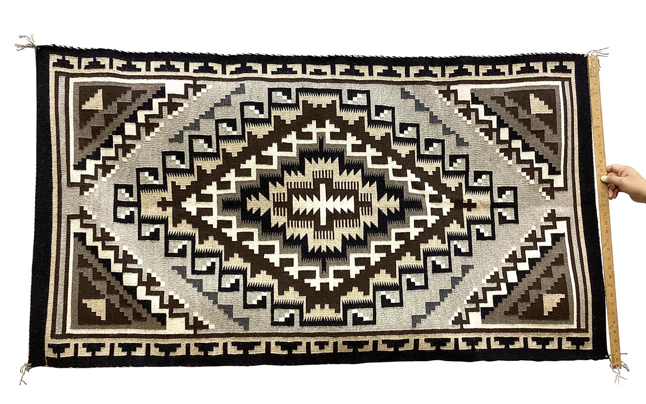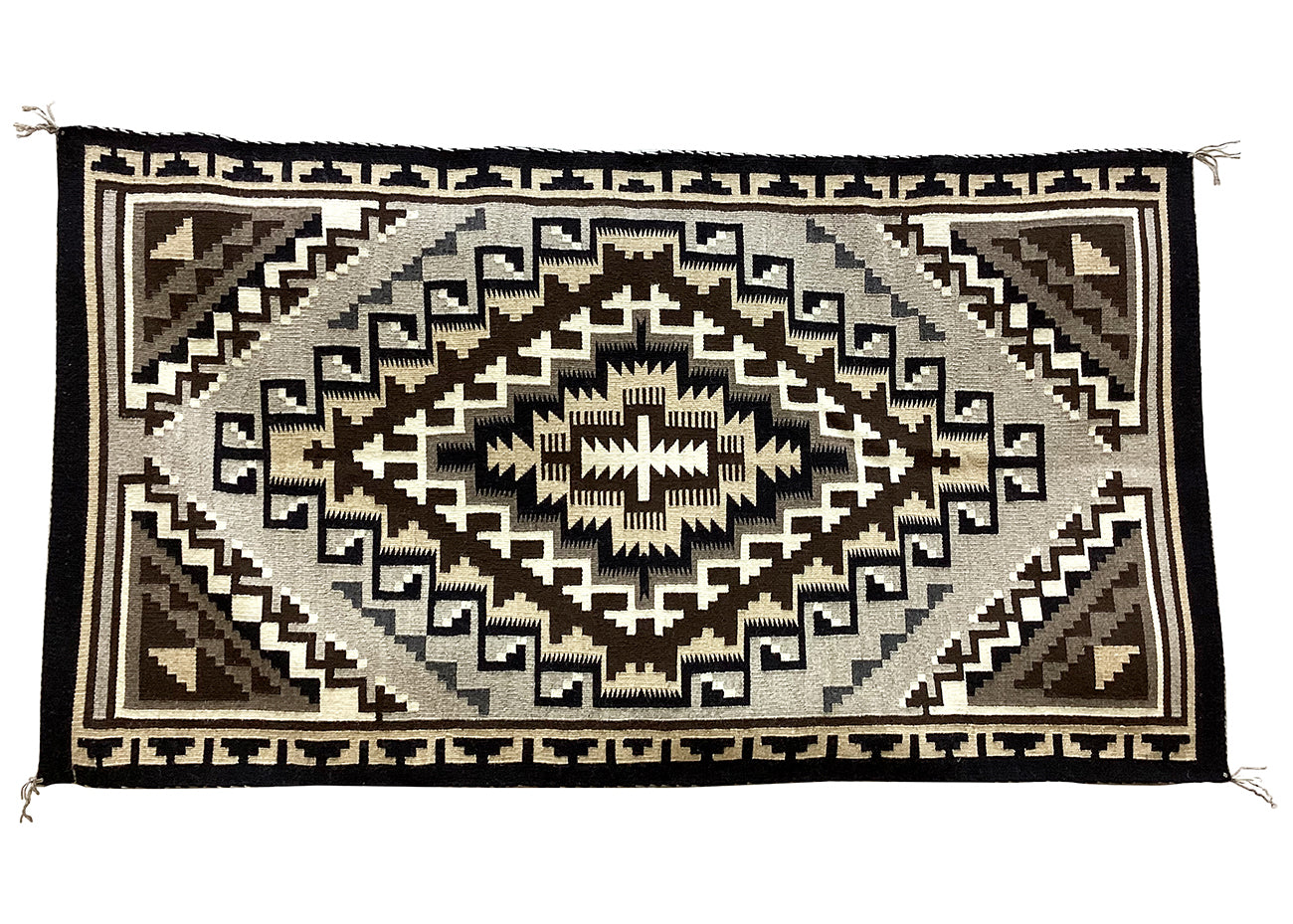 Traders like JB Moore would be the first to introduce the art of the Navajo to collectors back east, but it was rugs (not silver) that first captured the imaginations collectors and decorators. Following Moore's suit, other traders would begin to market Navajo weaving, even influencing many of the well-known styles. Today styles are not defined by regions but perfected by dedicated weavers from all parts of the Navajo Nations. We have put together a large collection of rugs on our online Trading Post and hope you take time to look through them all. Hopefully, you will find the perfect rug. The favorite weaving for many collectors is the Two Grey Hills. Famous because of the natural sheep colors and the stiff feel of churro wool. Many Two Grey Hills will have very complex patterns, and it takes a significant amount of time to realize all of the hidden symbols. Patterned after the classic Diamond designs this is definitely a style you need in your growing collection of rugs.