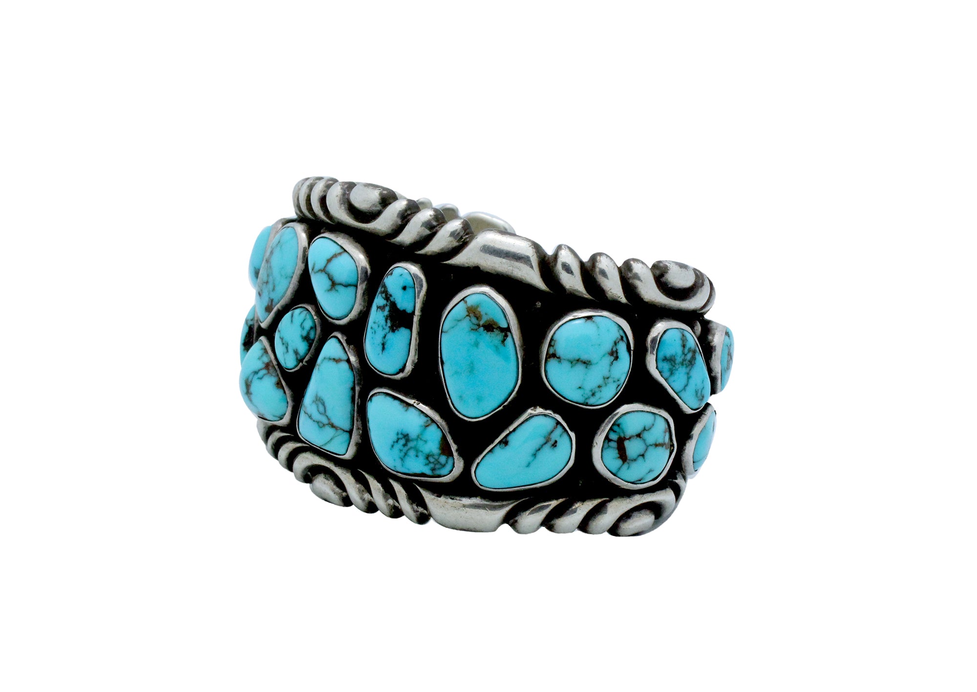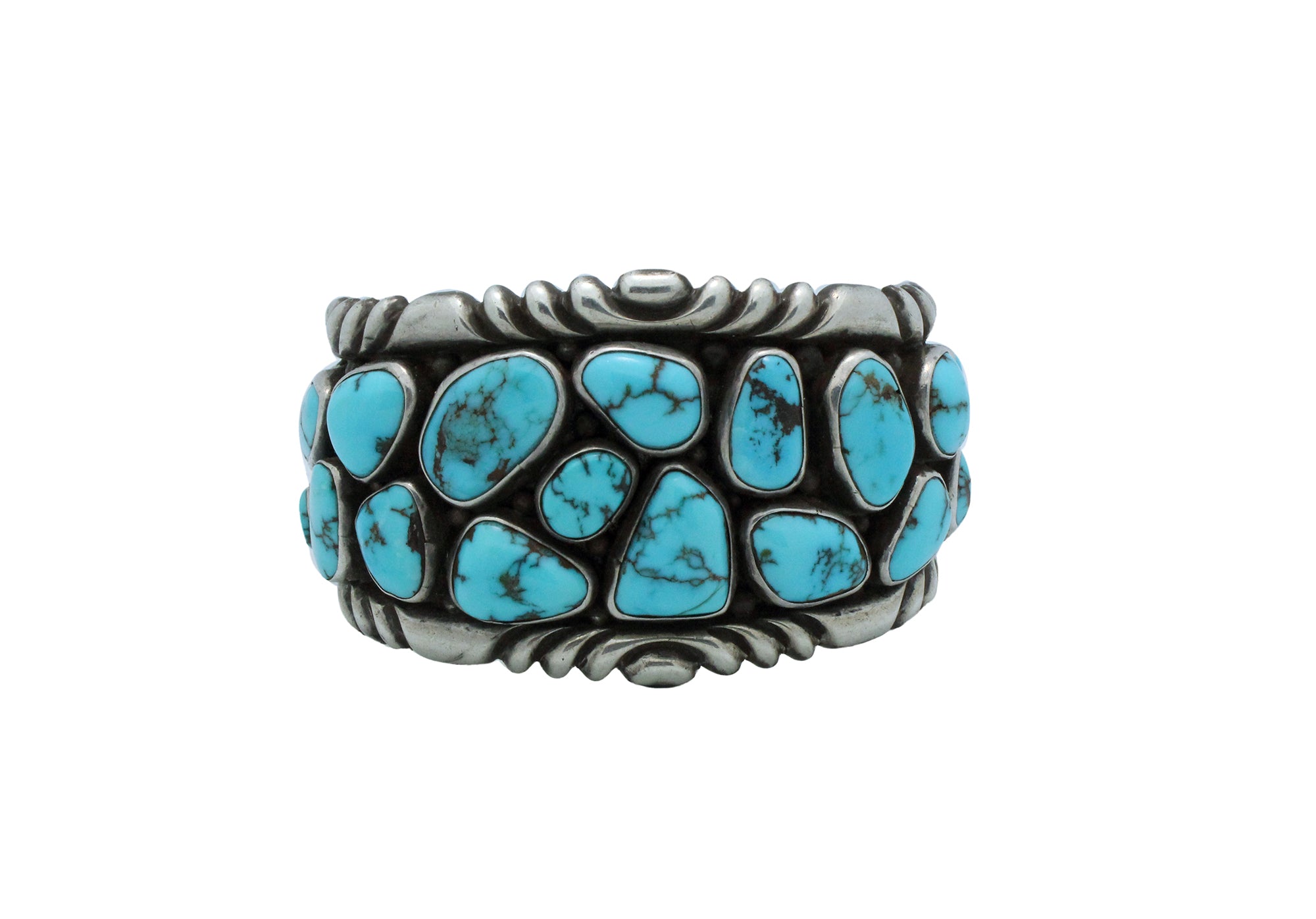 Wilford Nez, Bracelet, Candelaria Turquoise, Navajo Handmade, Circa 1980s, 6 7/8"
