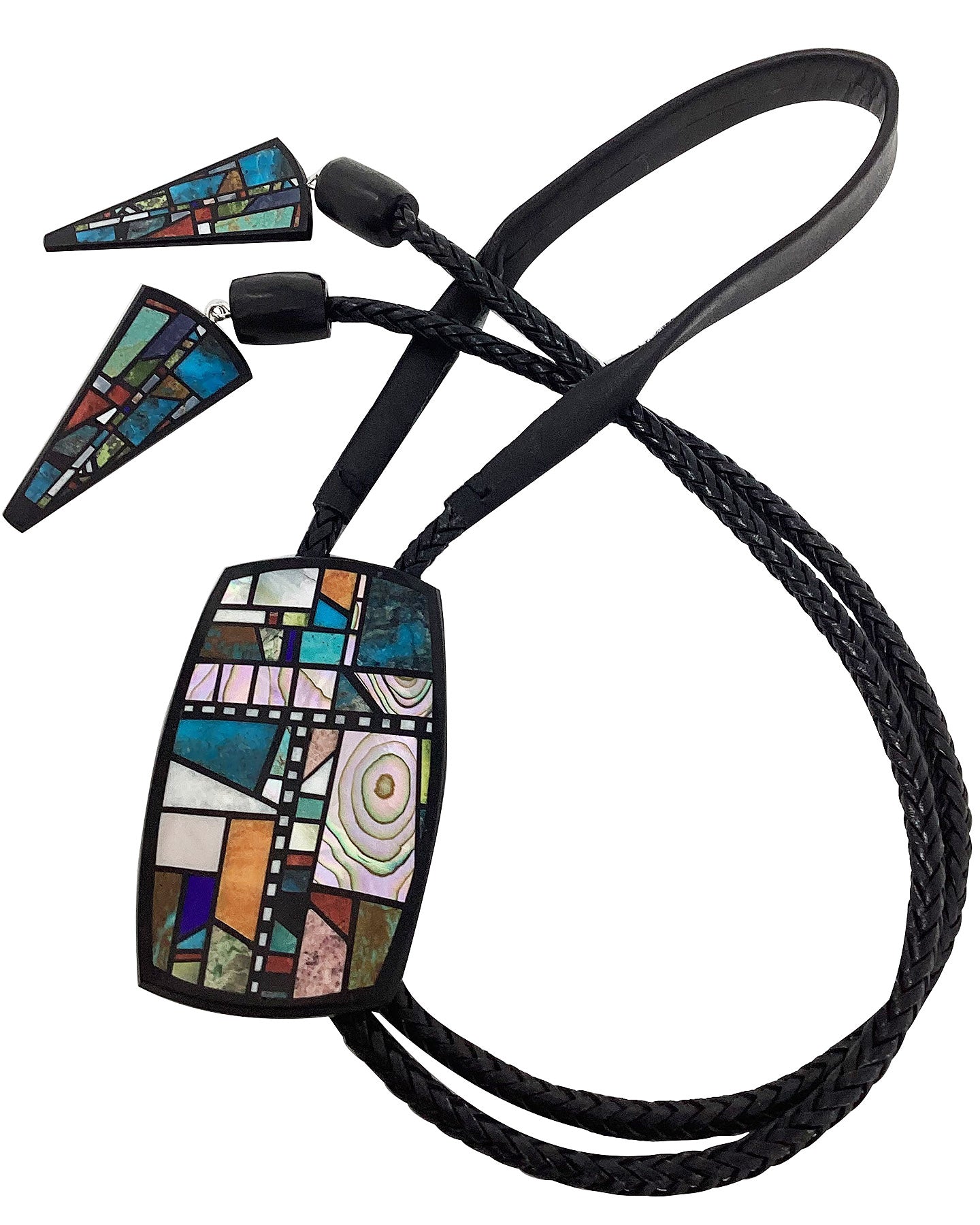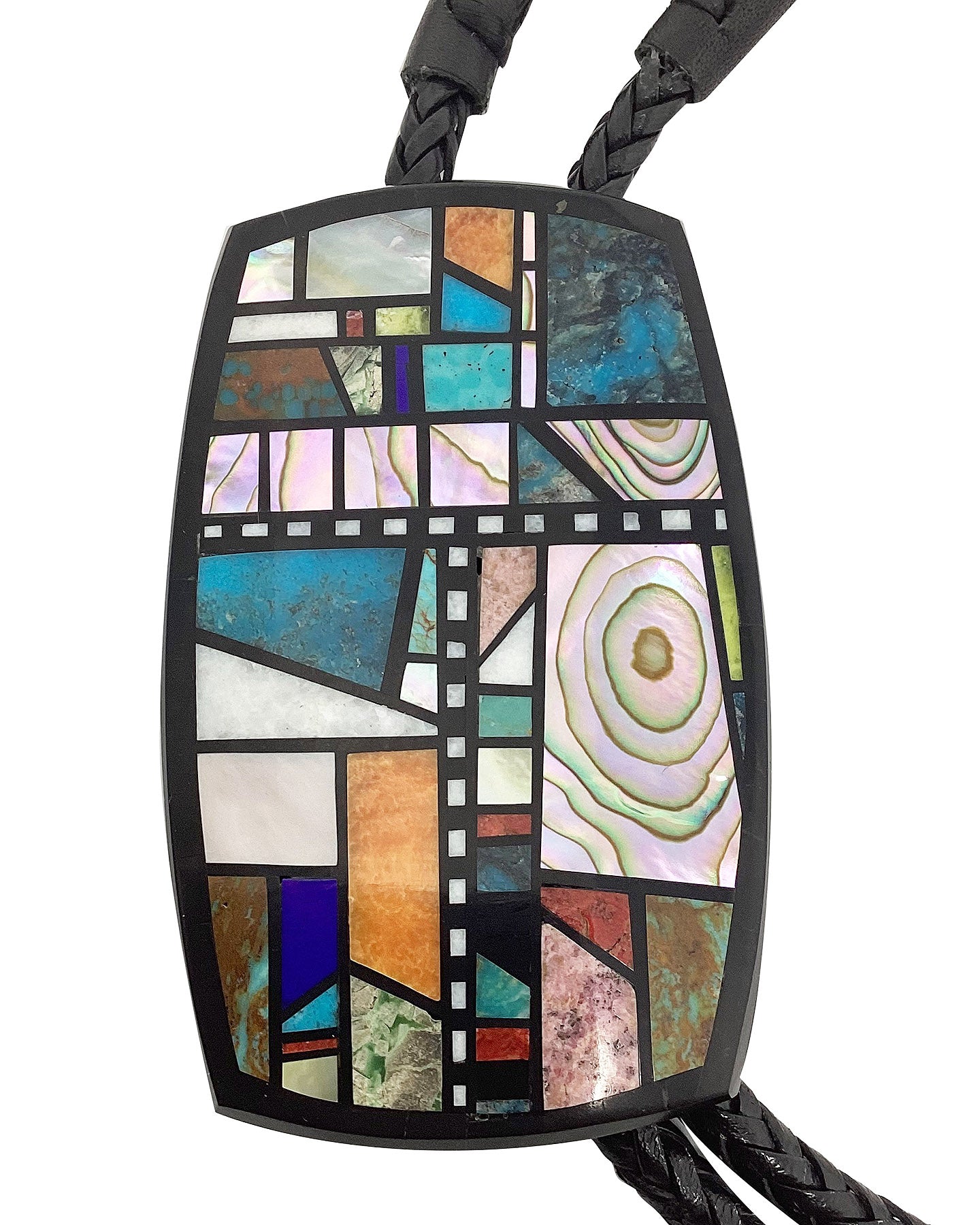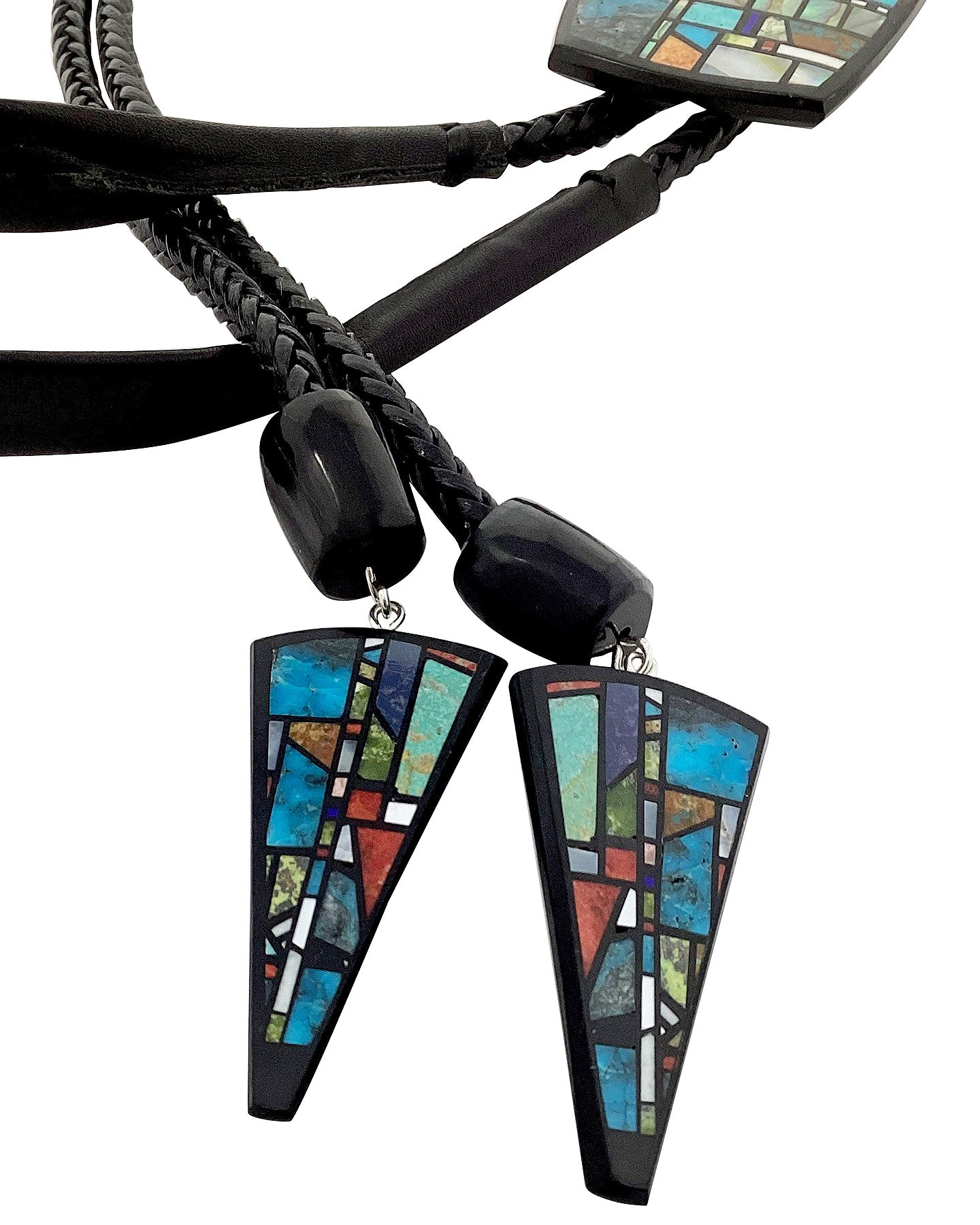 Christopher Nieto, Bolo Tie, Multi-Stone Inlay, Santo Domingo Handmade, 42"