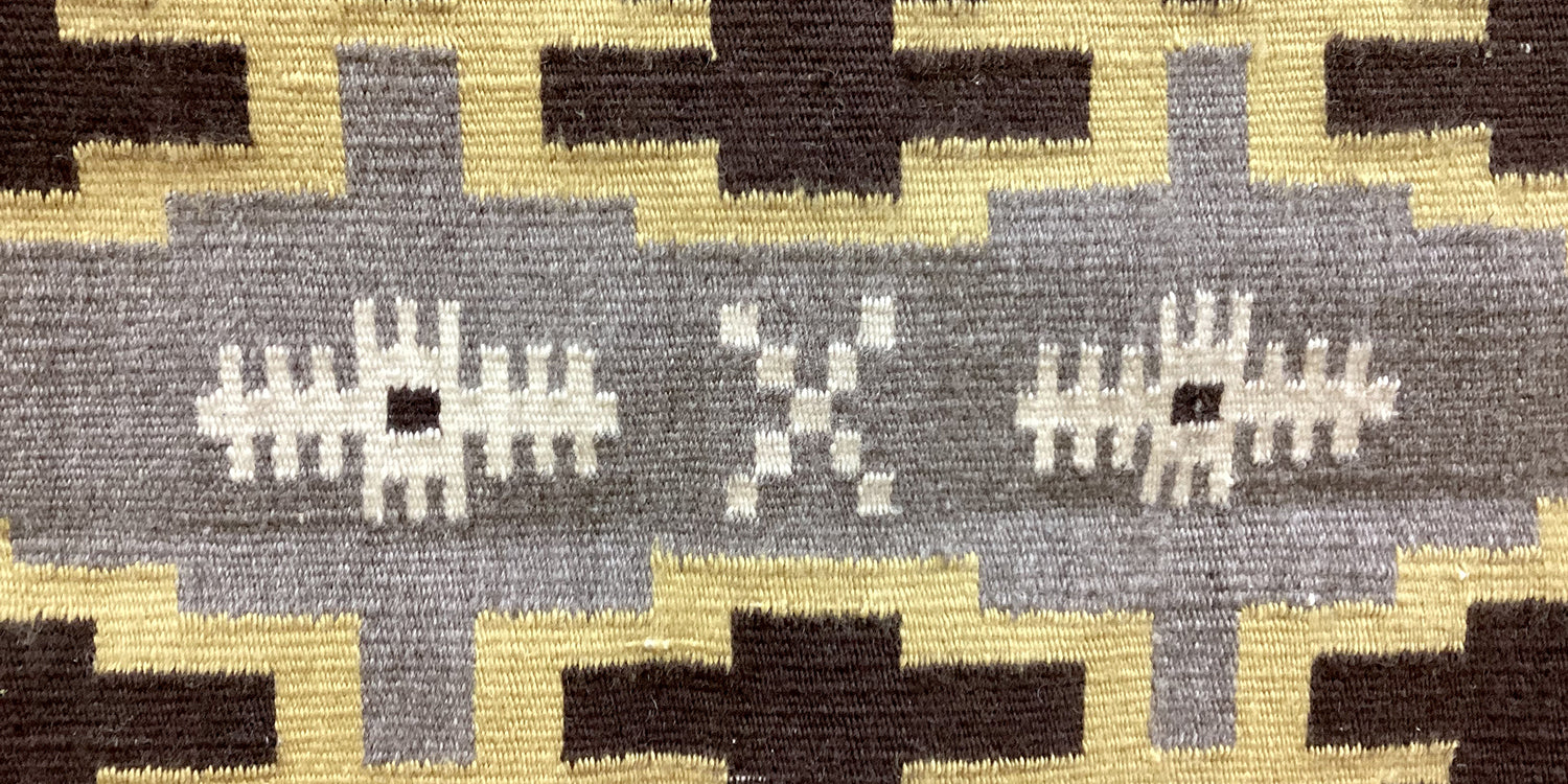 The favorite weaving for many collectors is the Two Grey Hills. Famous because of the natural sheep colors and the stiff feel of churro wool. Many Two Grey Hills will have very complex patterns and it takes a significant amount of time to realize all of the hidden symbols. Patterned after the classic Diamond designs this is definitely a style you need in your growing collection of rugs.