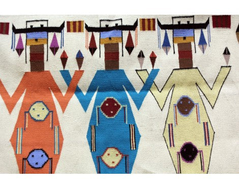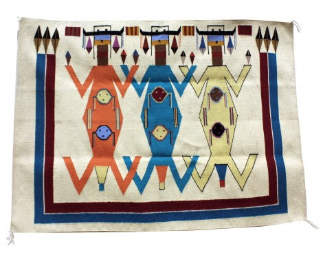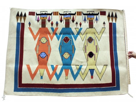 Navajo weaver Winona Joe makes many magnificent rugs for the Trading Post. This rug has a very good feel and an excellent design. If you are wanting something that reminds you of the very spiritual Navajo displayed in your home this would be the perfect rug.