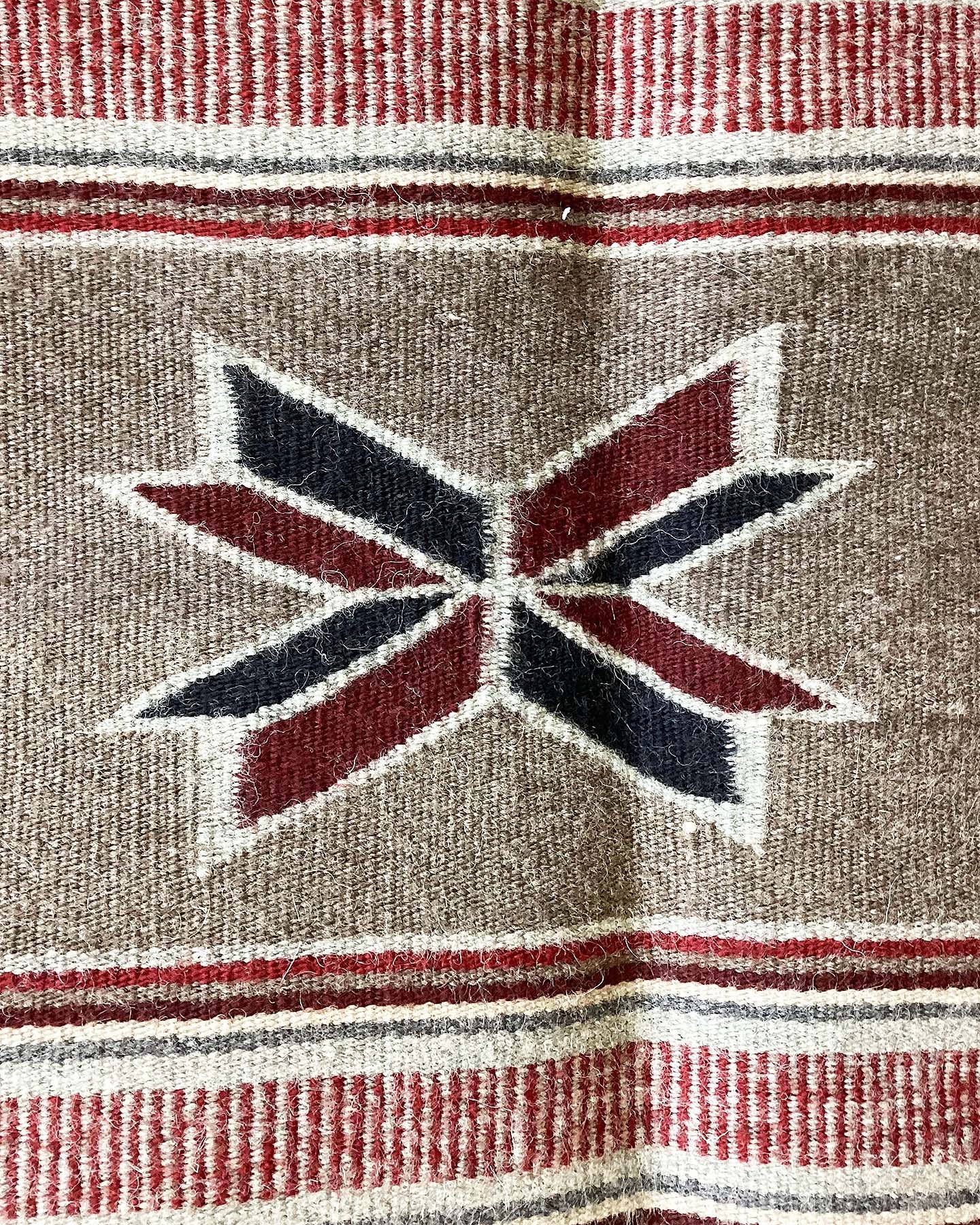 After the great Navajo rug revival at the end of the 19th century, spearheaded by Lorenzo Hubbell at Ganado and J. B. Moore of Crystal, many felt that the quality of Navajo weaving was beginning another decline. Mary Cabot Wheelwright, wealthy Bostonian and patron of the arts, was one of the most vocal in this regard. In 1920, after attending a Yei Bi Chei ceremony at Canyon de Chelly, she met Cozy McSparron, owner of the Chinle Trading Post. Wheelwright voiced her concerns about commercial dye colors, poor weaving quality and unimaginative designs. She found that McSparron agreed. The two then began a “revitalization” campaign, attempting to bring back the banded serape patterns of the Classic period, using mostly warm, pleasing, vegetal dyed colors. Their efforts were rewarded and appreciated by buyers. In 1932 the Eastern Association on Indian Affairs took up the same crusade, encouraging weavers to return to Classic style patterns in natural colors. (Amsden:1934) By 1938 this weaving revitalization was well established in the Chinle area.