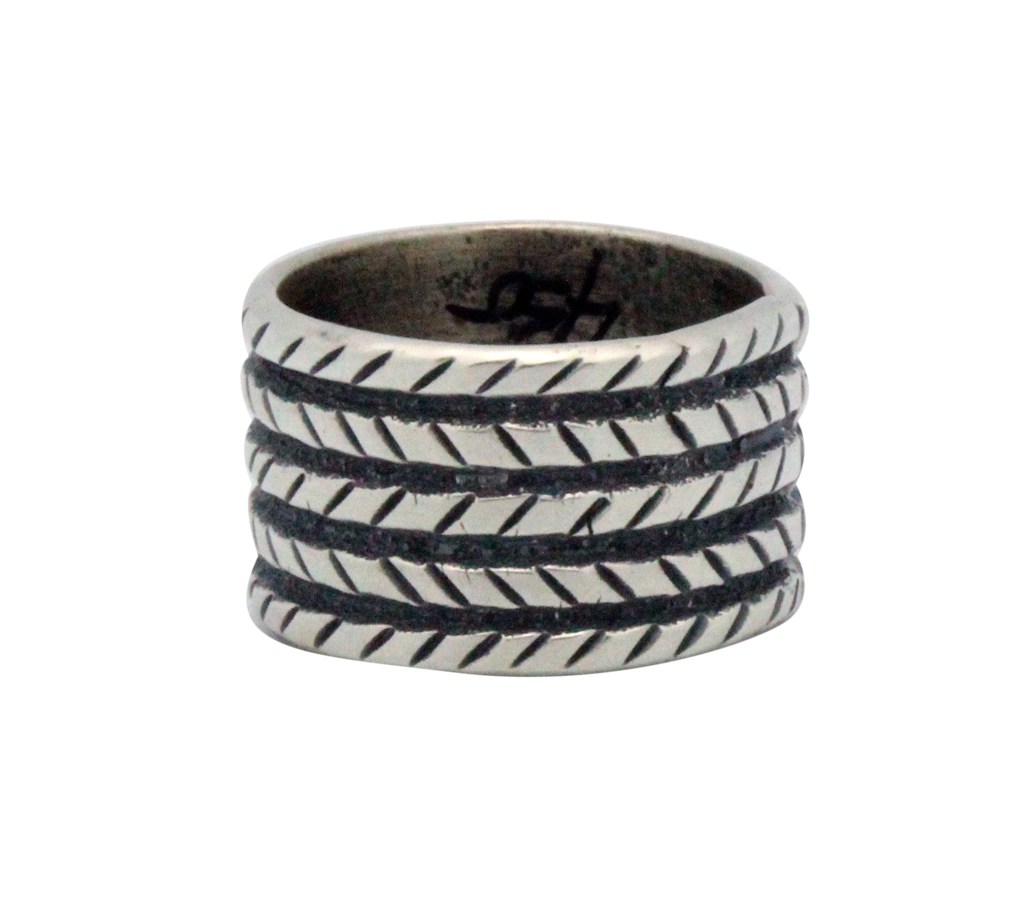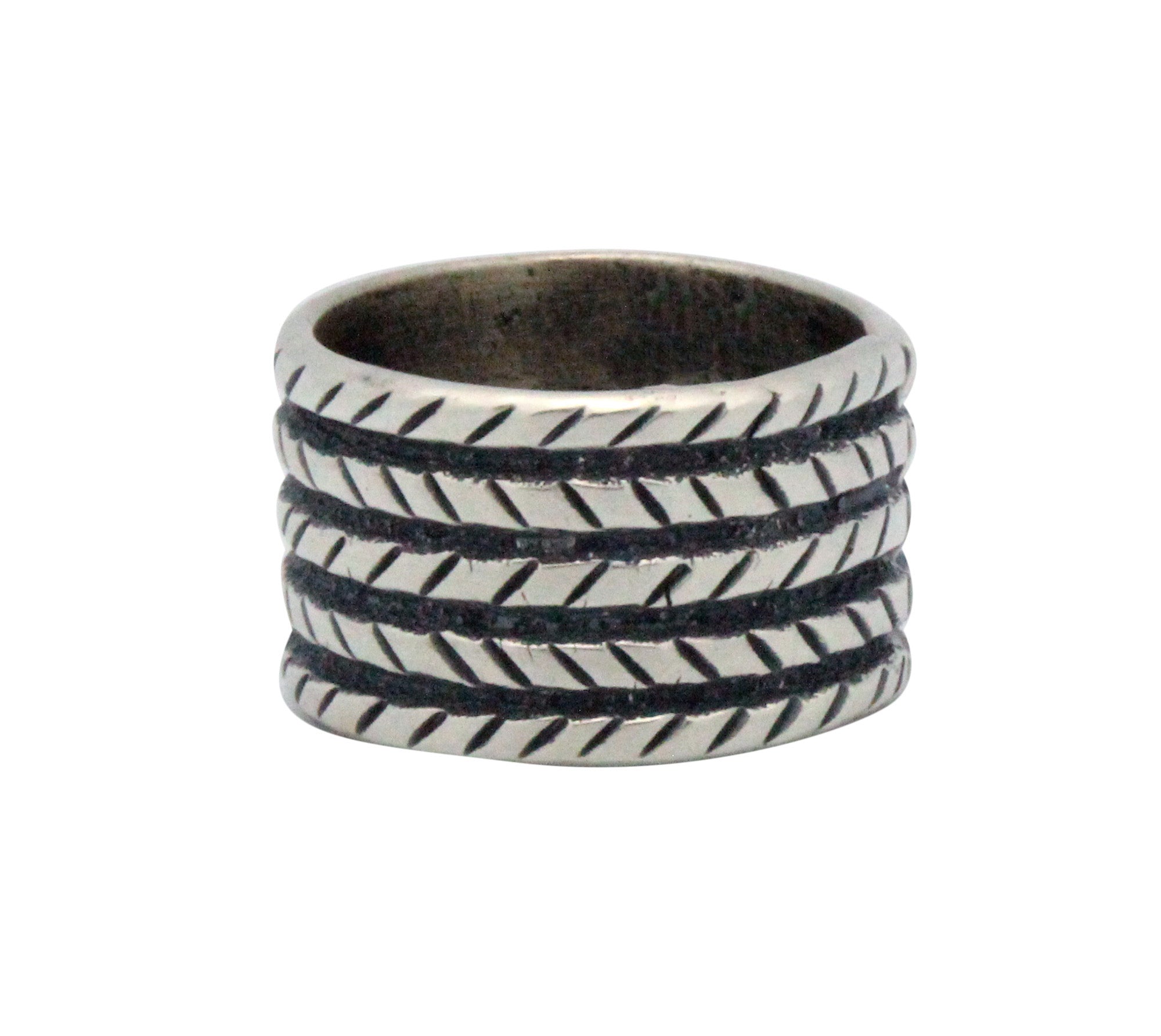 Aaron Anderson, Ring, Wide Band, Tufa, Sterling Silver, Navajo Handmade, 12