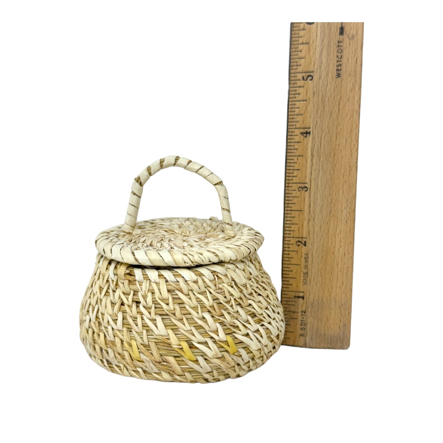 Papago Handwoven Basket, Vintage, Lidded, 3" x 3 1/4"