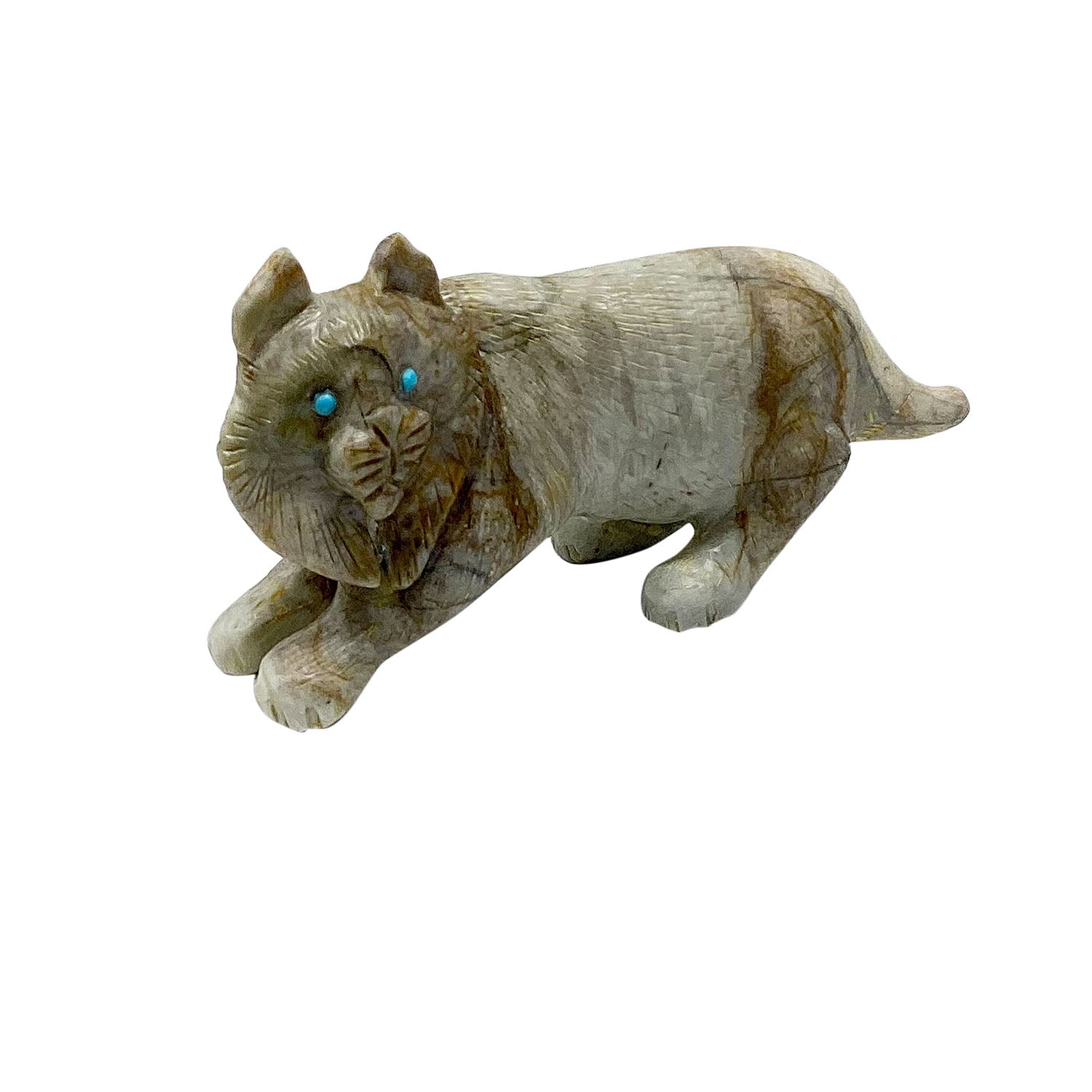 Wilfred Cheama, Bobcat, Fetish, Picasso Marble, Turquoise, Zuni, 2"