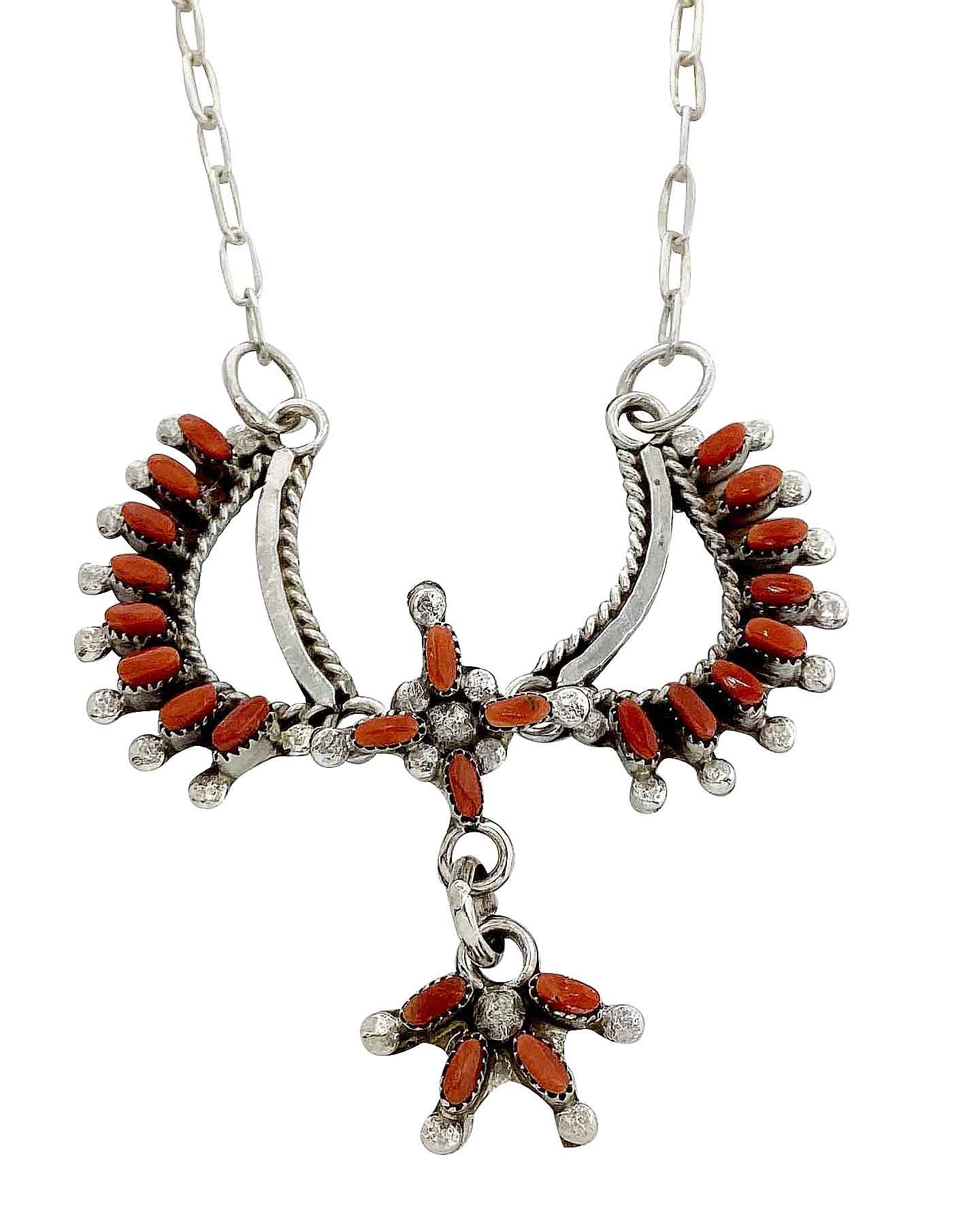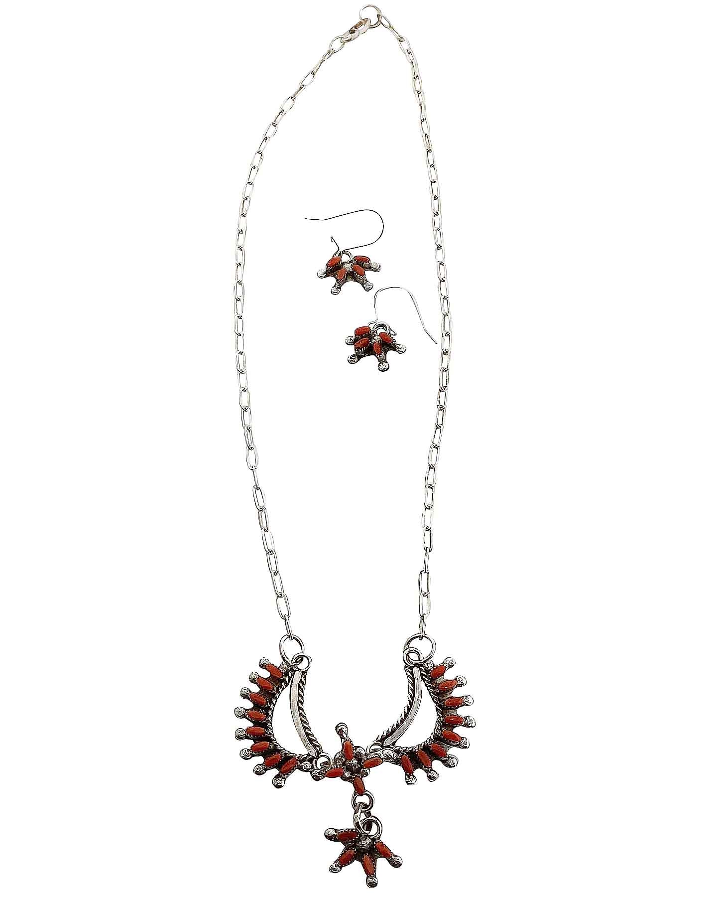Rose, Darryl Fambrough, Necklace, Earrings, Mediterranean Coral, Zuni Made, 15"