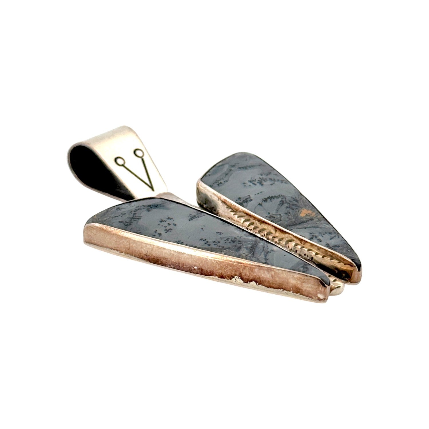 Harold Joe, Pendant, Snowflake Obsidian, Sterling Silver, Navajo, 2 3/4"