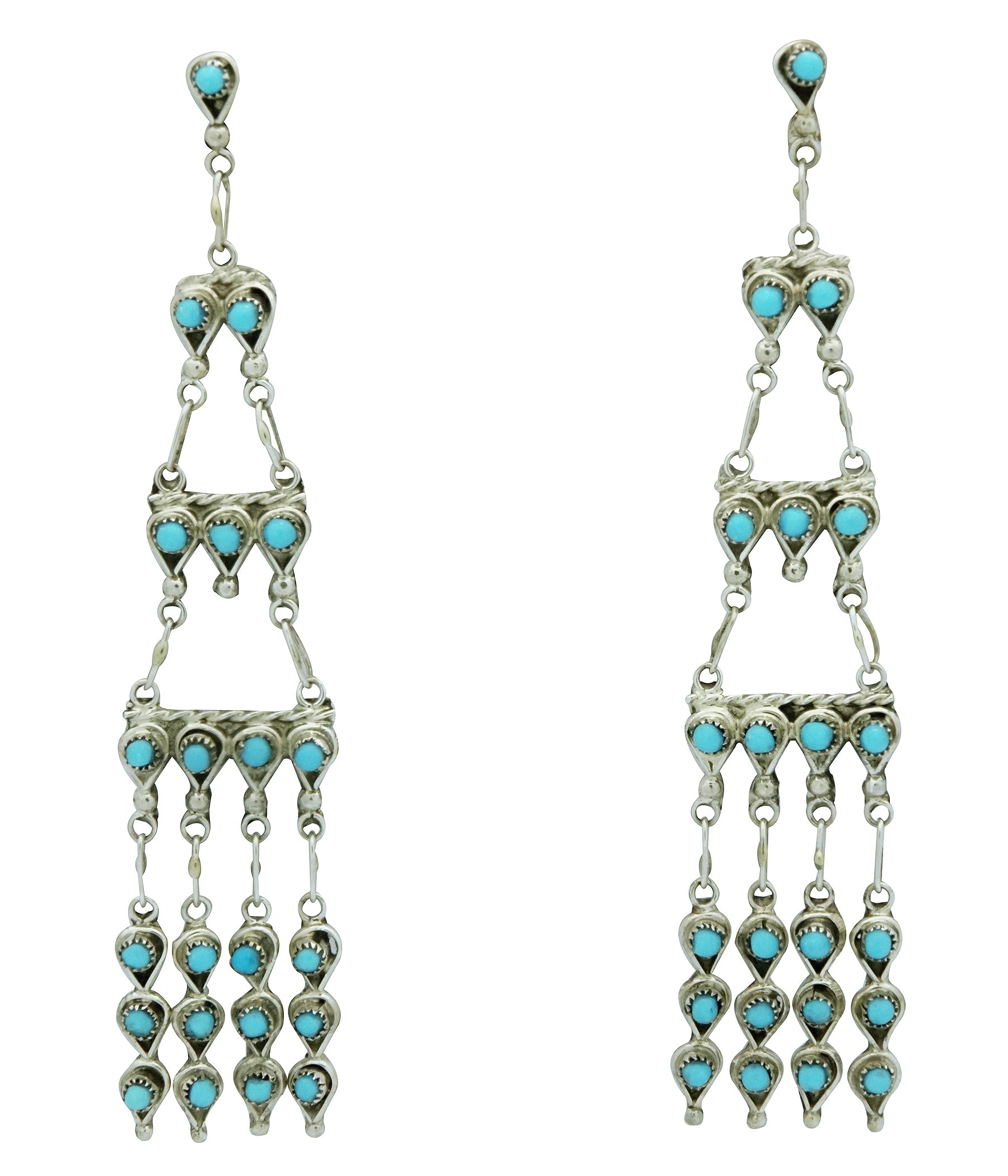 Waylon Johnson, Earrings, Sleeping Beauty Turquoise, Chandelier, Zuni, 3 1/2"
