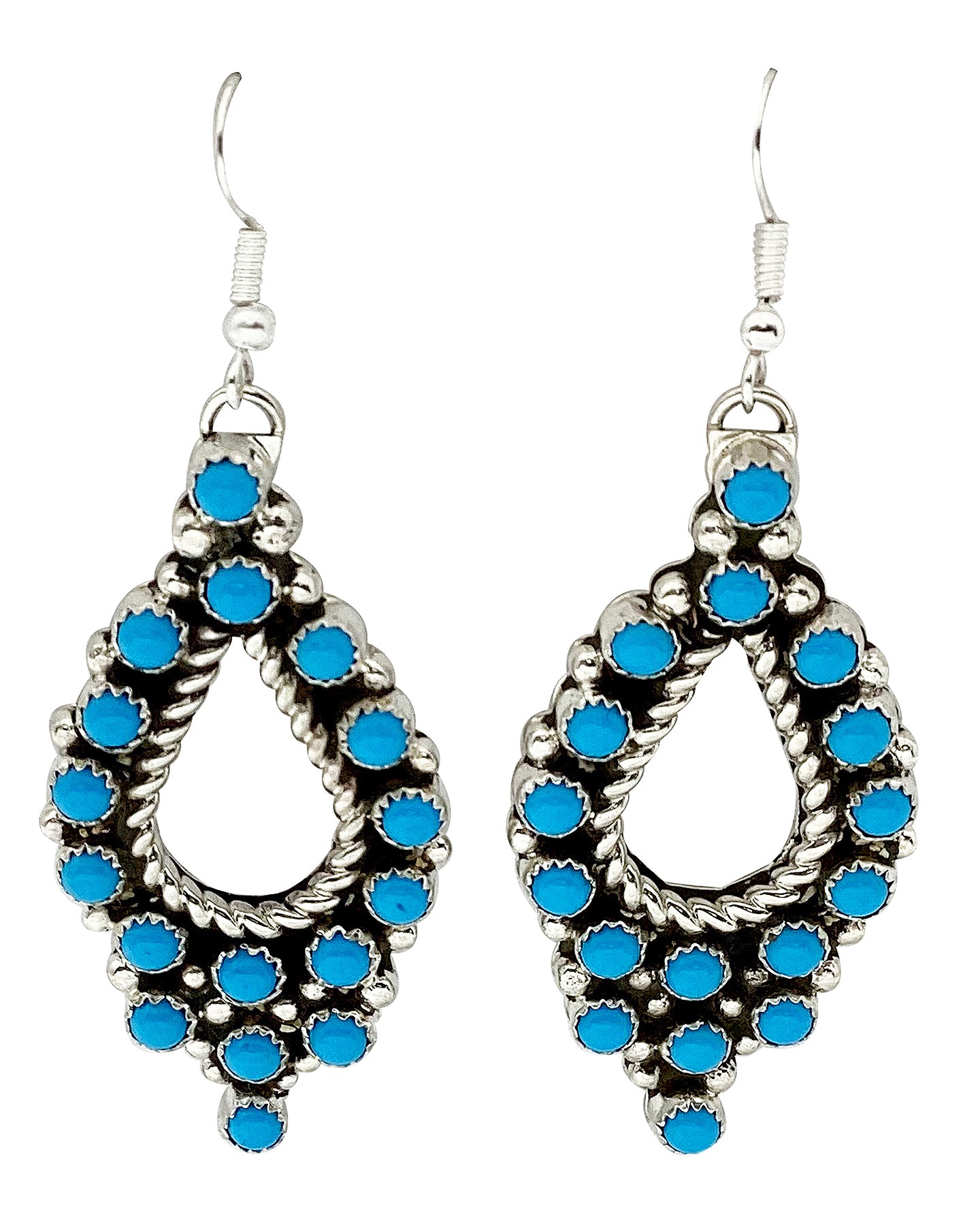 Brian Jones, Dangle Earrings, Kingman Turquoise, Navajo Handmade, 2 3/4"