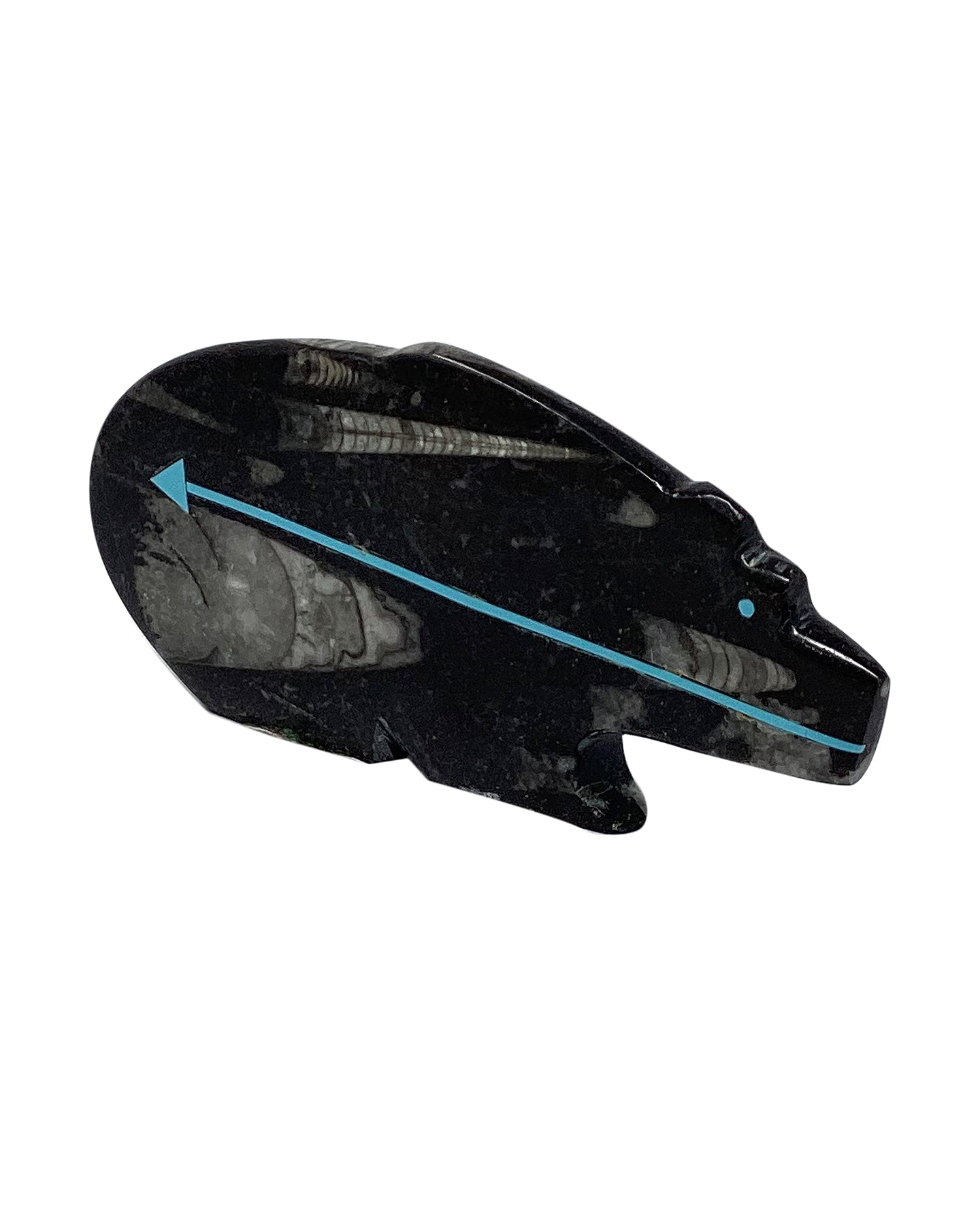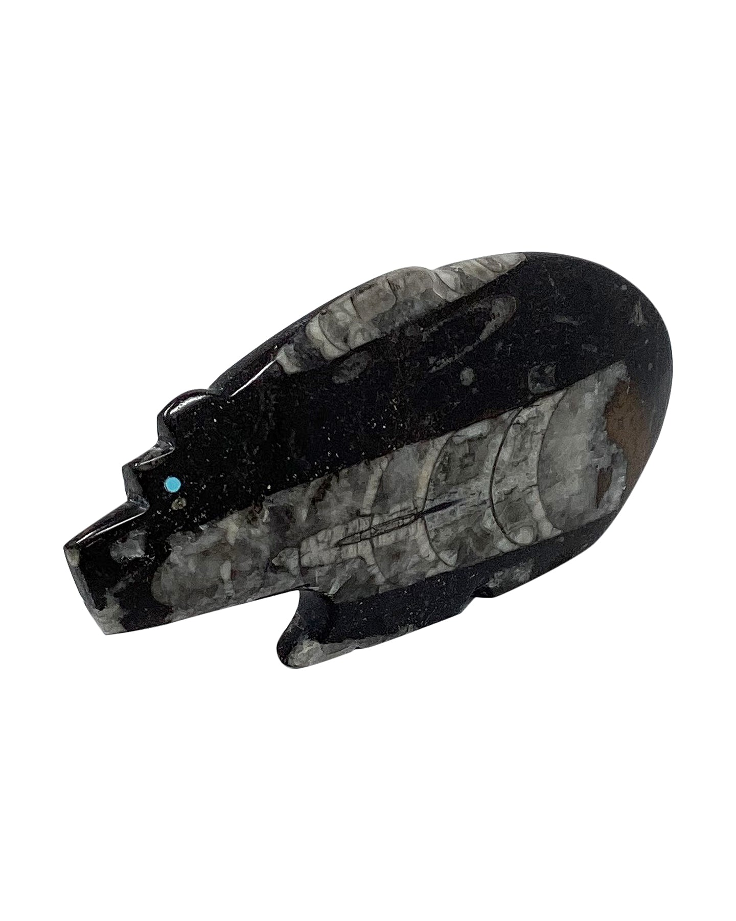 Bernard Laiwakete, Bear Fetish, Fossil, Zuni Handmade, 2 3/8"