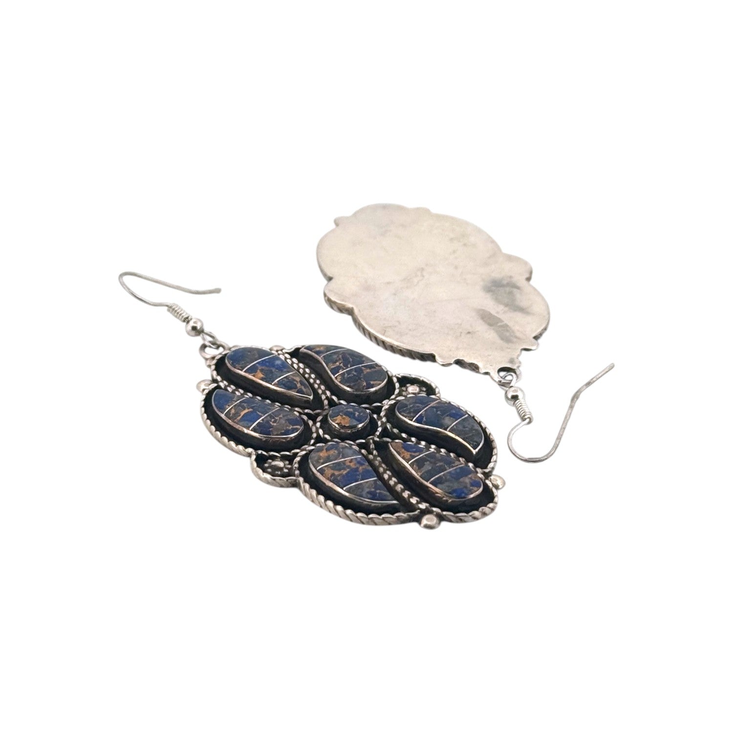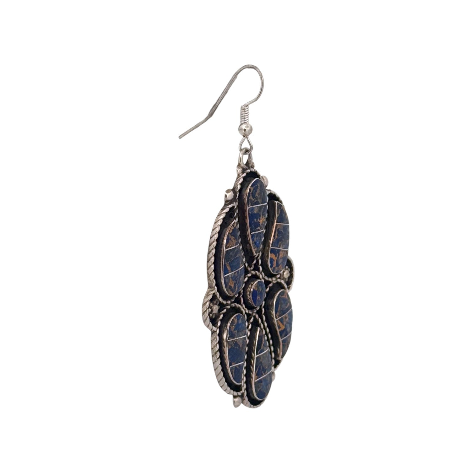 B.C. Leekity, Earring, Lapis Lazuli, Sterling Silver, Zuni Handmade, 3"