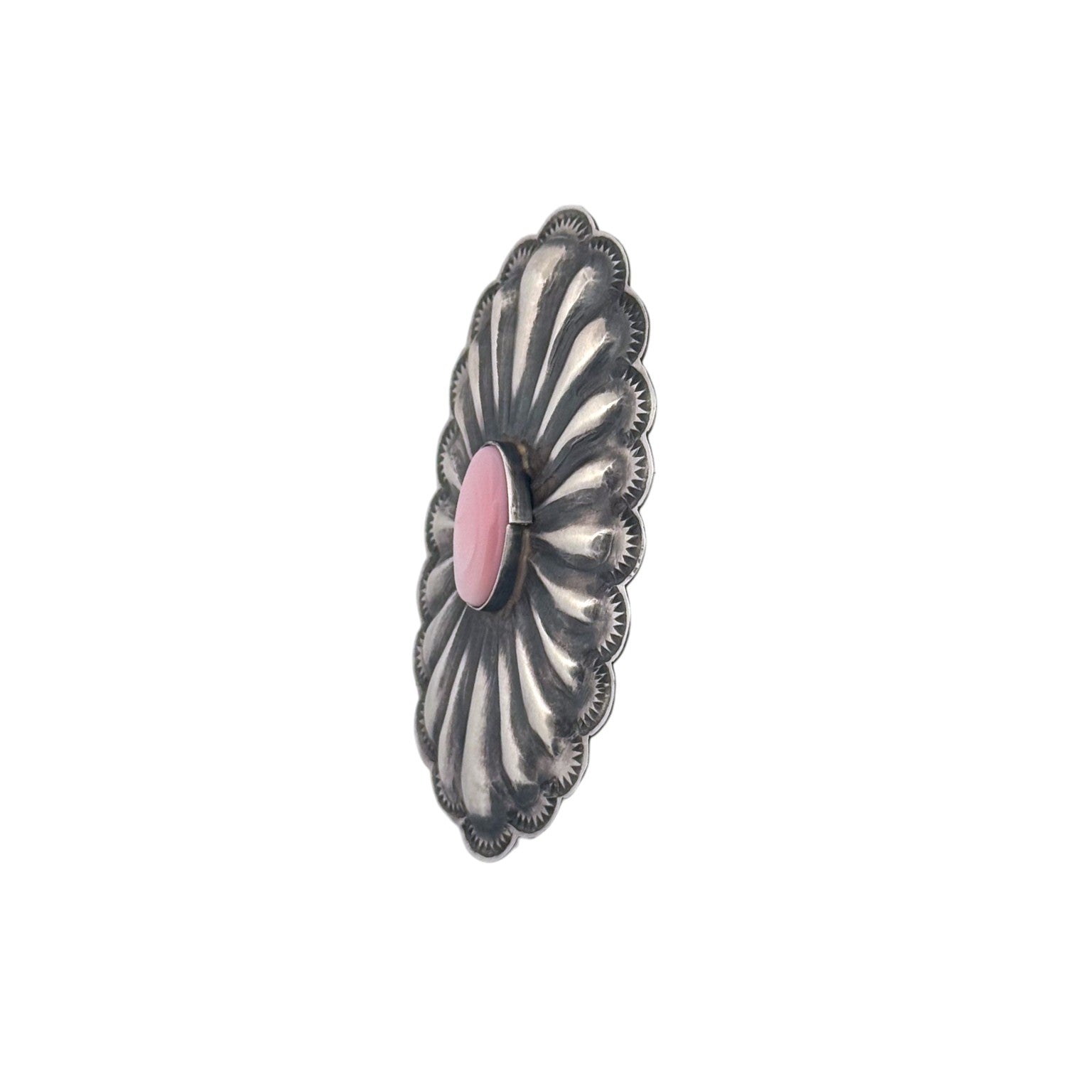 Rita Lee, Earring, Pink Shell, Sterling Silver, Navajo Handmade, 2 1/2"