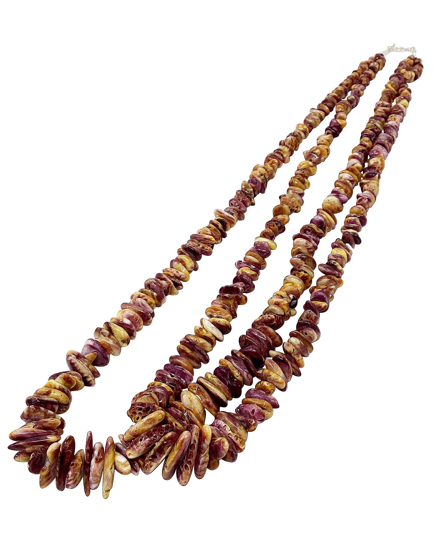 Wanita Skeet, Necklace, Two Strands Spiny Oyster Shell, Purple, 23"