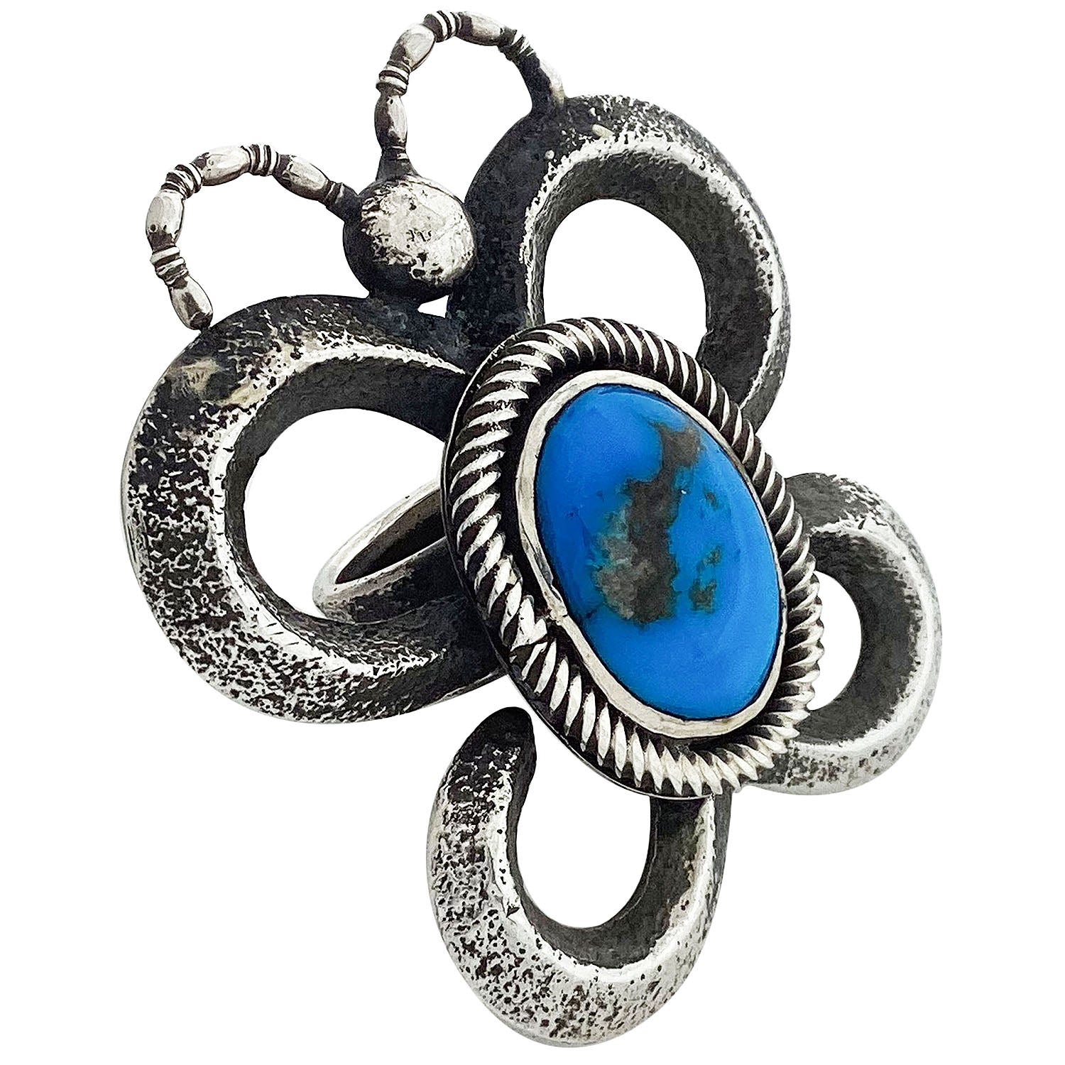 Roy Tracy, Ring, Butterfly, Kingman Turquoise, Tufa, Silver, Navajo Handmade, 6
