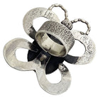 Butterflies fill the sky with beauty during the summer months. They always seem to have these bold colors that really show against the brown desert landscape. It only makes sense that a number of artists from this area use the butterfly for inspiration. This ring is a tufa cast creation that takes on the shape of butterfly. You will find that Navajo silversmith Roy Tracy used a deep blue cut of Kingman Turquoise to fill the body. You are going to be very impressed on how easy this large piece will be to wear. We are always happy to get our hands on Roy's work, he makes an excellent piece of silver and stone.