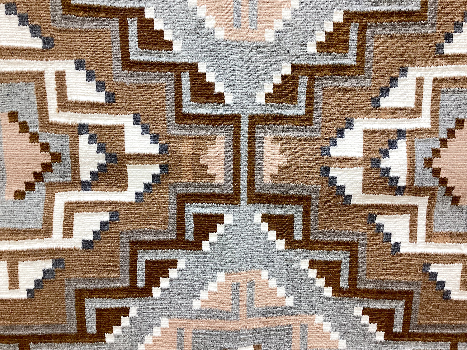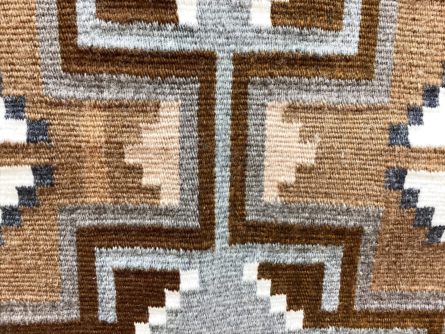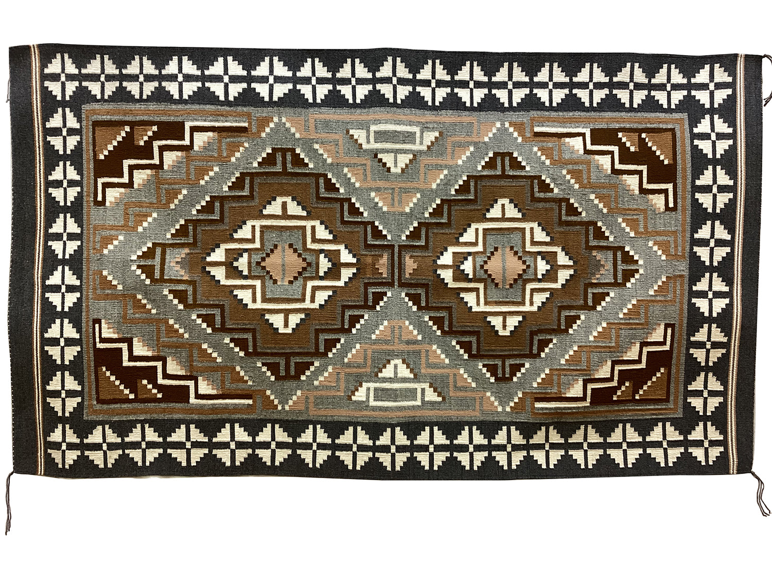 The favorite weaving for many collectors is the Two Grey Hills. Famous because of the natural sheep colors and the stiff feel of churro wool. Many Two Grey Hills will have very complex patterns and it takes a significant amount of time to realize all of the hidden symbols. Patterned after the classic Diamond designs this is definitely a style you need in your growing collection of rugs.