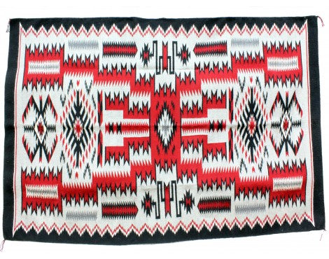 The Storm Pattern is a favorite among many collectors. This style of rug is filled with an amazing design that starts at the center and reaches out to the four corners of the weaving. You will also find the weaving filled with lots of other symbols. Storm rugs come in many different colors, and some of the most popular are done in those classic combinations like the Ganado Red. These are very impressive weavings and it is not uncommon to find one of these in the 10 feet range.