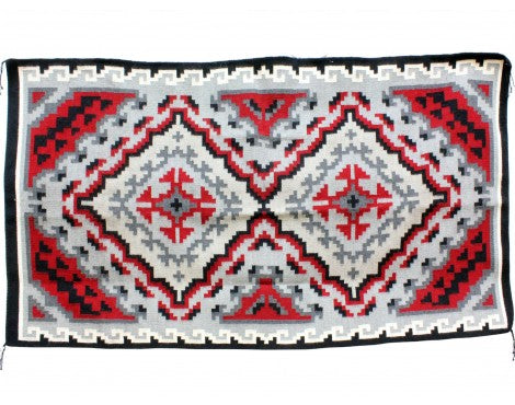 Drive 15 minutes south of Ganado and you will end up in the very small community of Klagetoh. No wonder the rug looks so similar to the Ganado Red and many times called just that. The difference is the background color. The Klagetoh uses a gray background color opposed to the red of the Ganado weaving. You will find the same classic diamond design as the focus of the more natural colored weaving.