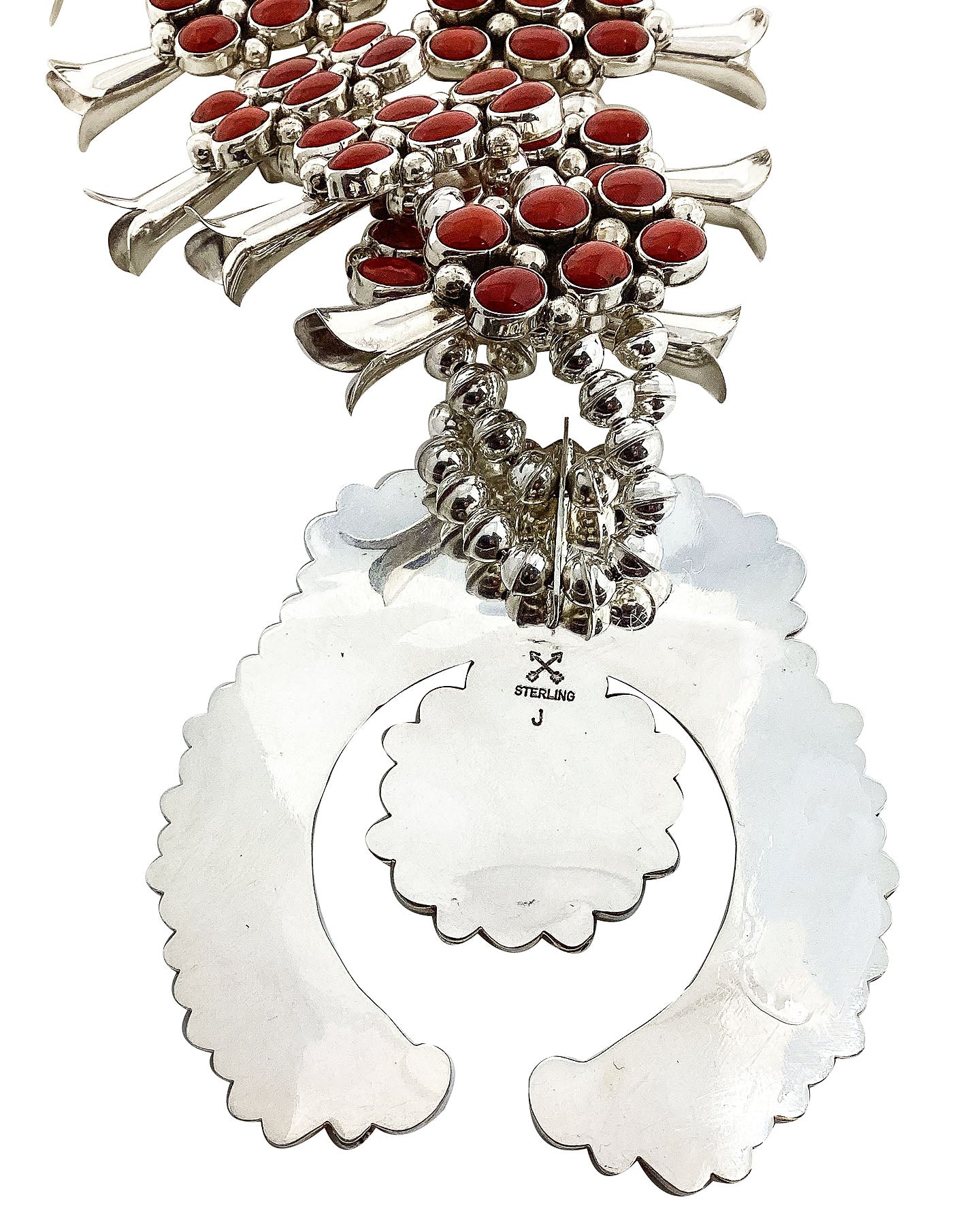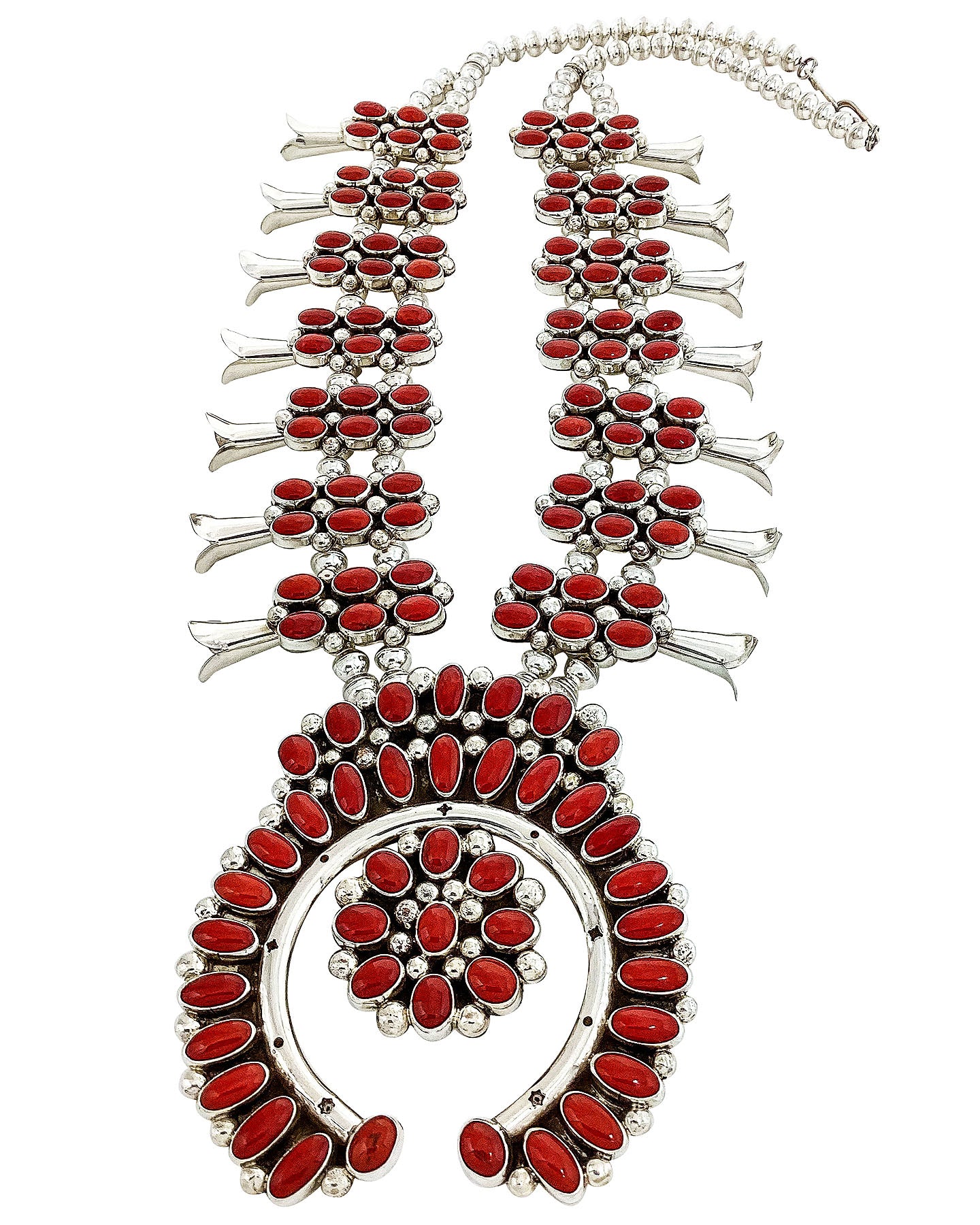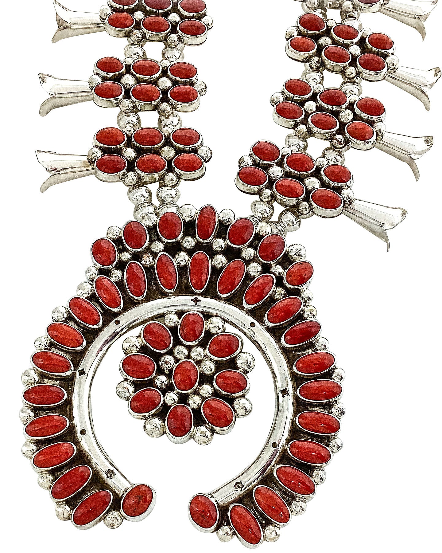 Melvin, Tiffany Jones, Squash Blossom Necklace, Mediterranean Coral, Navajo, 26"