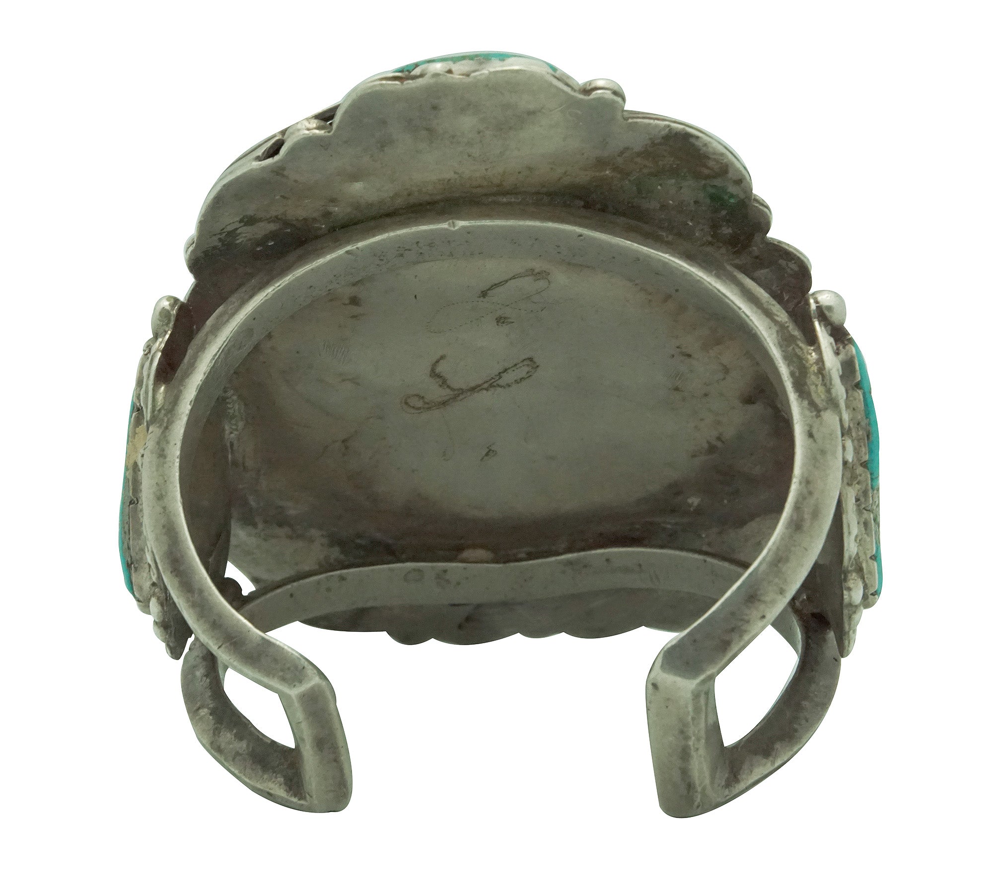 Navajo Handmade Bracelet, Morenci Turquoise, Circa 1960s, Signed JL, 6 5/8"