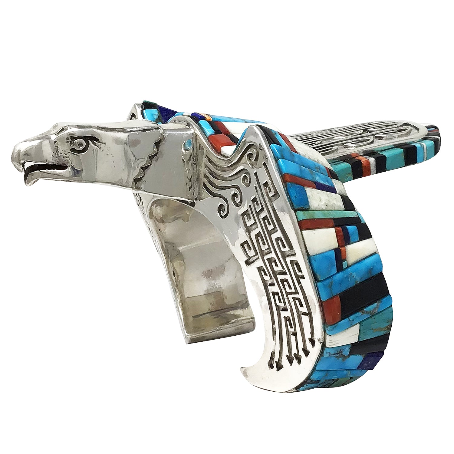 Hank Whitethorne, Bracelet, Eagle, Multi Stone Inlay, Navajo Handmade, 6 5/8"