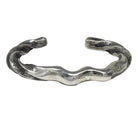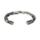 Award-winning artist Aaron Anderson creates his works of wearable art using an old Navajo jewelry making technique, tufa casting. This technique allows him to be only limited by his imagination. Aaron has designed a thick piece of silver that has a unique high rise twist style that is very eye-catching. He has filled the piece with the ends having a textured look, that gives the bracelet a pleasing look. This is one of those great pieces that cross over from traditional Navajo silver and allow you to wear it in a number of ways. It is a new design by Aaron and one we hope to see more of.