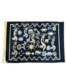 Storytelling is part of Navajo culture. No history text had been written until the Europeans showed up, everything was passed down orally and through art. You will find storytelling in silver, basket weaving and other forms of art. That also holds true for rug weavings, where pictures and symbols tell the contemporary and traditional past of the Navajo people. Enjoy looking through our collection of pictorial rugs, some fascinating creations.