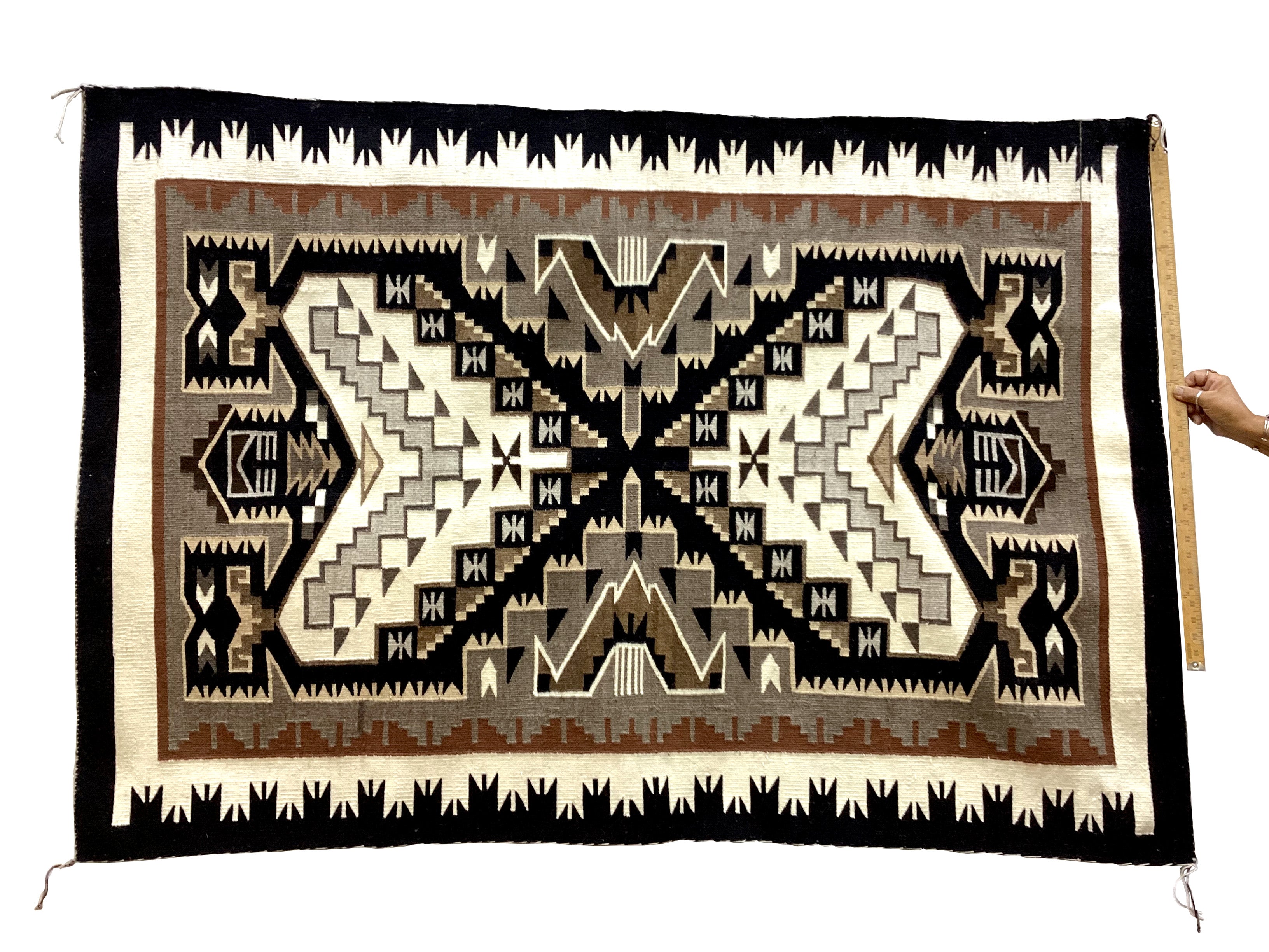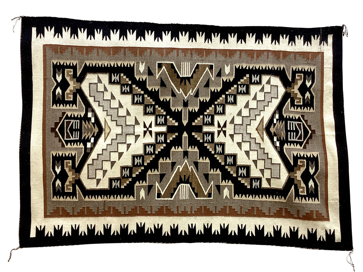 Traders like JB Moore would be the first to introduce the art of the Navajo to collectors back east, but it was rugs (not silver) that first captured the imaginations collectors and decorators. Following Moore's suit, other traders would begin to market Navajo weaving, even influencing many of the well-known styles. Today styles are not defined by regions but perfected by dedicated weavers from all parts of the Navajo Nations. We have put together a large collection of rugs on our online Trading Post and hope you take time to look through them all. Hopefully, you will find the perfect rug. The favorite weaving for many collectors is the Two Grey Hills. Famous because of the natural sheep colors and the stiff feel of churro wool. Many Two Grey Hills will have very complex patterns, and it takes a significant amount of time to realize all of the hidden symbols. Patterned after the classic Diamond designs this is definitely a style you need in your growing collection of rugs