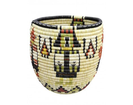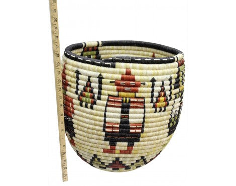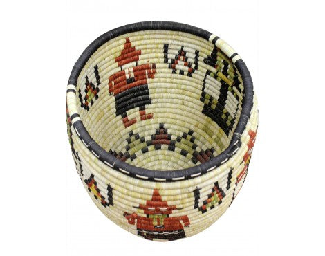 Hopi coil basket weaving isn't something you learn overnight. All of the weavers we have baskets from grew up in a house that wove baskets, something that was introduced to them from an early age. You will find these basket weavers on the Second Mesa. We have an interview with Irene Lamayaktewa who talked a little bit about the colors you find and the materials in coil basket. "We make the coil basket from straw and yucca that we pick from areas around Hopi. Many of the colors are from the yucca plant, yellow comes from yucca being harvested in winter, the white is summer, and the green can be picked any time of the year. Also, we will use sunflower for the black and Hopi Tea (hohocy) for the red." Make sure you look through our online collection. We have both baskets and plaques.