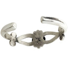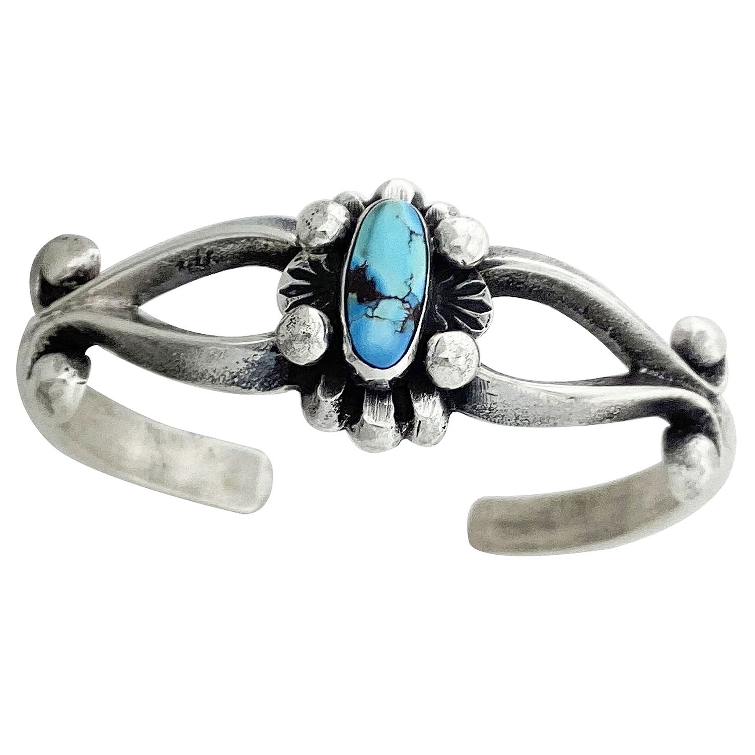 Author Gregory Schaff is coming out with his final installment in his American Indian Jewelry Artist Biography series. This time he is going to focus on the masters of the craft, and he has named Aaron Anderson a master of tufa casting. Aaron is very innovative in his designs, and he has dedicated himself to the perfection of his art. This beautiful bracelet is home to an amazing piece of turquoise. The uniquely colored rock is a piece of Golden Hill Turquoise. Aaron sets the stone at the center of an easy wearing narrow cuff. You will notice the piece has been carved with a traditional design that really captures the Navajo flavor of silver.