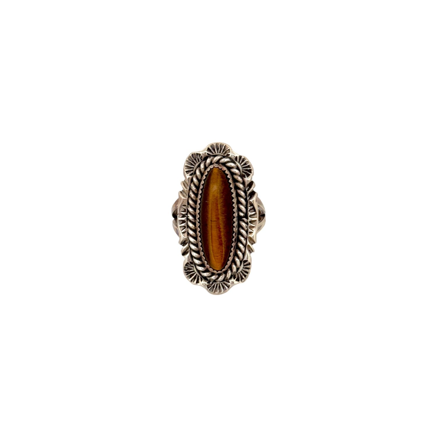 Sheila Becenti, Ring, Tigers Eye, Sterling Silver, Navajo, 8 1/2"