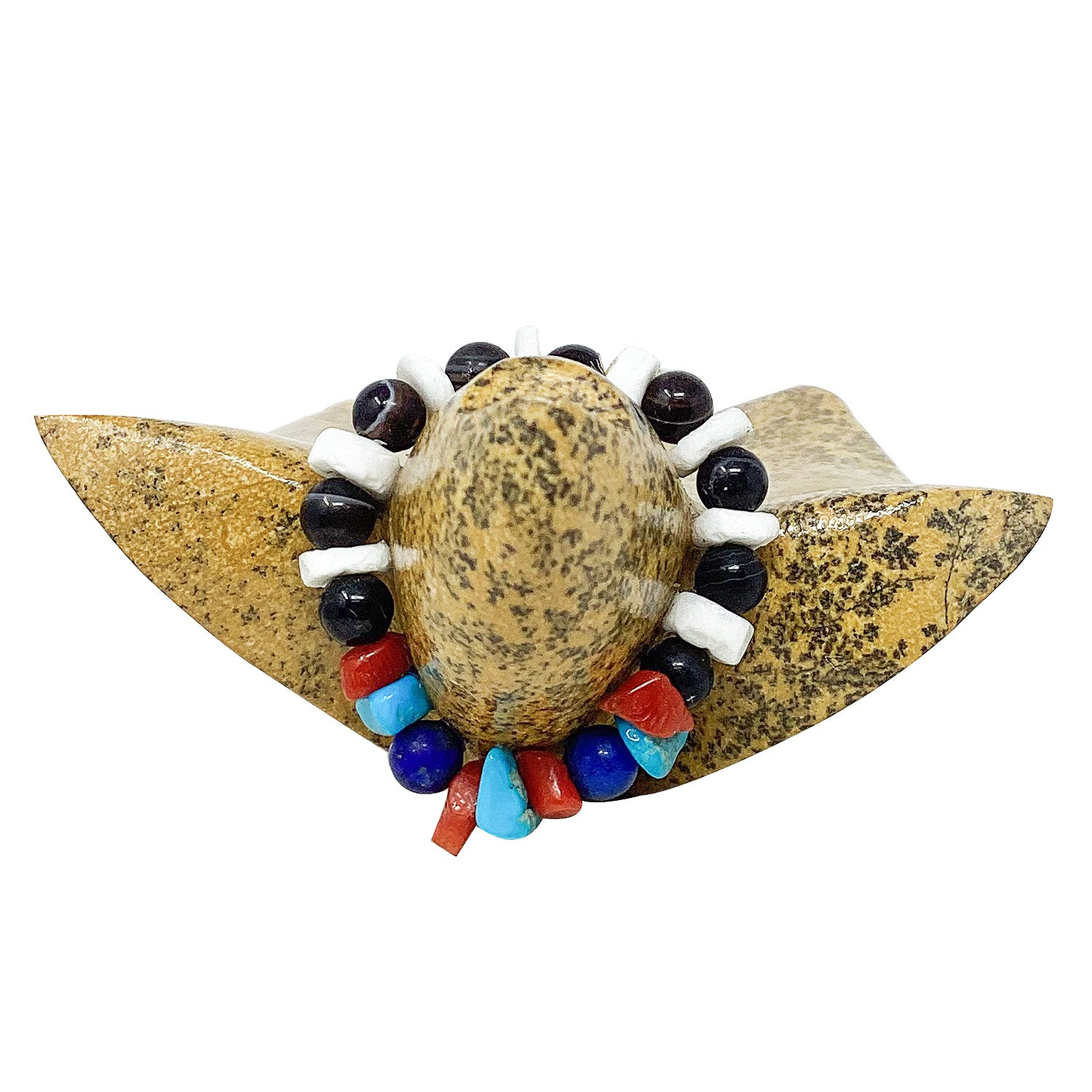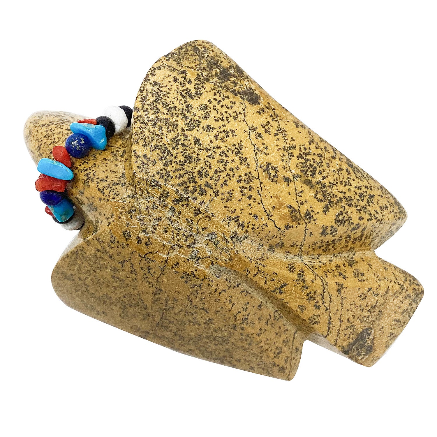 In the Zuni culture all beings belong to one system, whether they are supernatural, animal, or human. The human is the most complete or finished in this system. Animals and the elements are more mysterious and powerful because we do not possess or understand some of their powers. The Zuni uses the Fetish so he can control or understand those powers beyond his own. They are considered a living thing and are cared for and fed between ceremonies. If an object possess a power it is a fetish, if not a carving. That I imagine is left up to your own beliefs. Fetishes are used for many different things. A popular use of fetishes are for hunting, protection, healing, and initiations. The Perry Null Trading Post is on the Zuni Highway and we get a nice assortment of Zuni fetishes. We purchase them directly from the artist. In our listings we try to give you the artist name or initials on the piece and the proper stone. Look through our collection, some interesting and nice pieces.