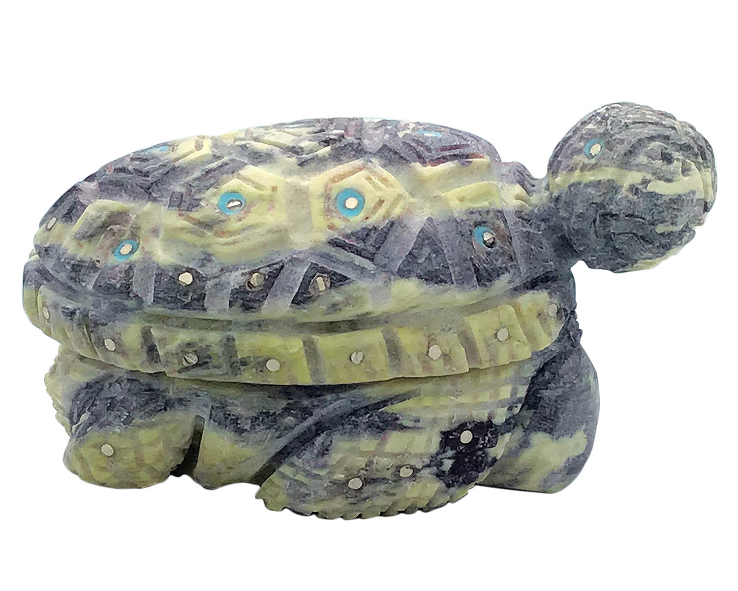 Kenny Chavez, Sea Turtle, Serpentine, Turquoise, Zuni Handmade Fetish, 2 3/4”