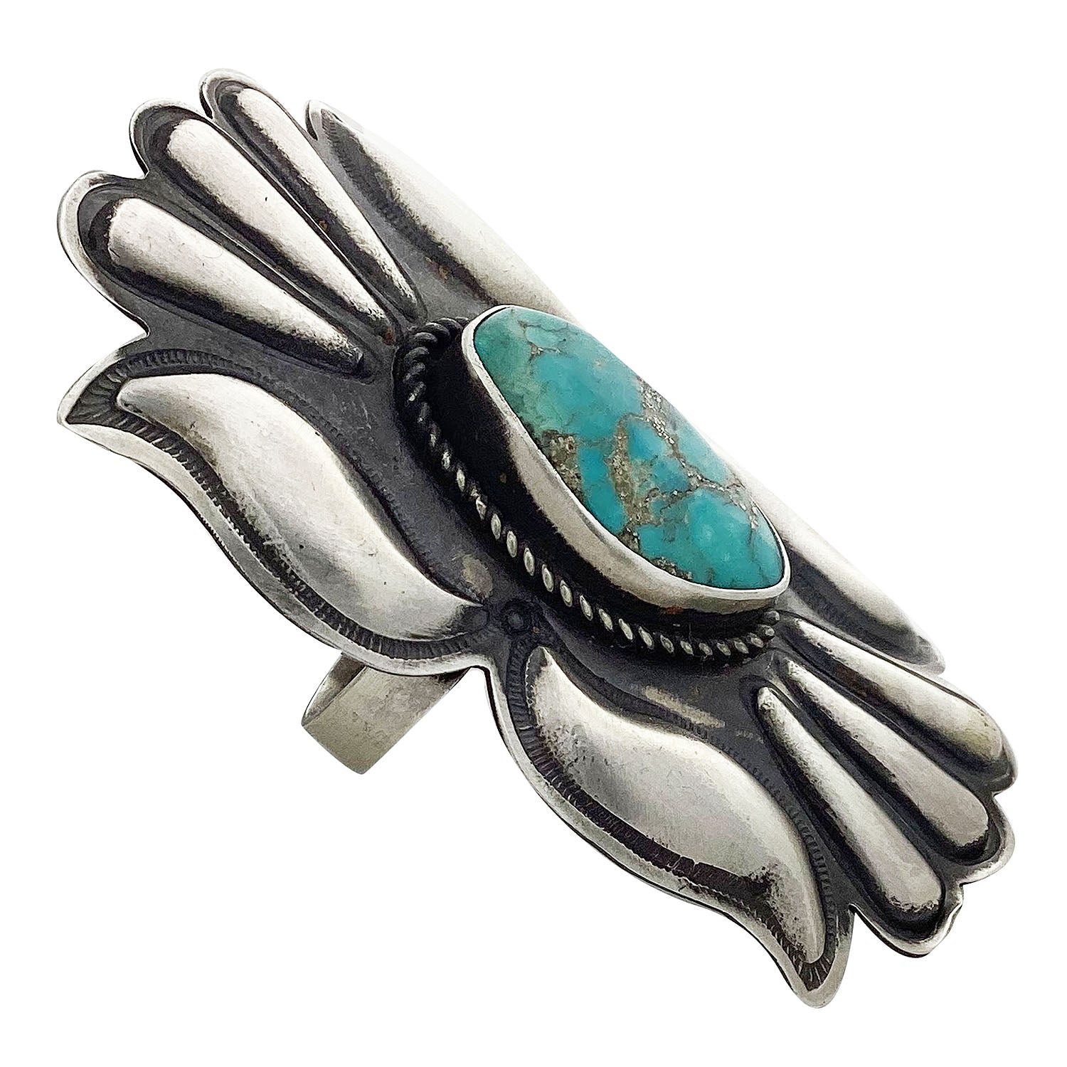 Julian Chavez, Ring, Kingman Turquoise, Old Style, Navajo Handmade, Adjustable