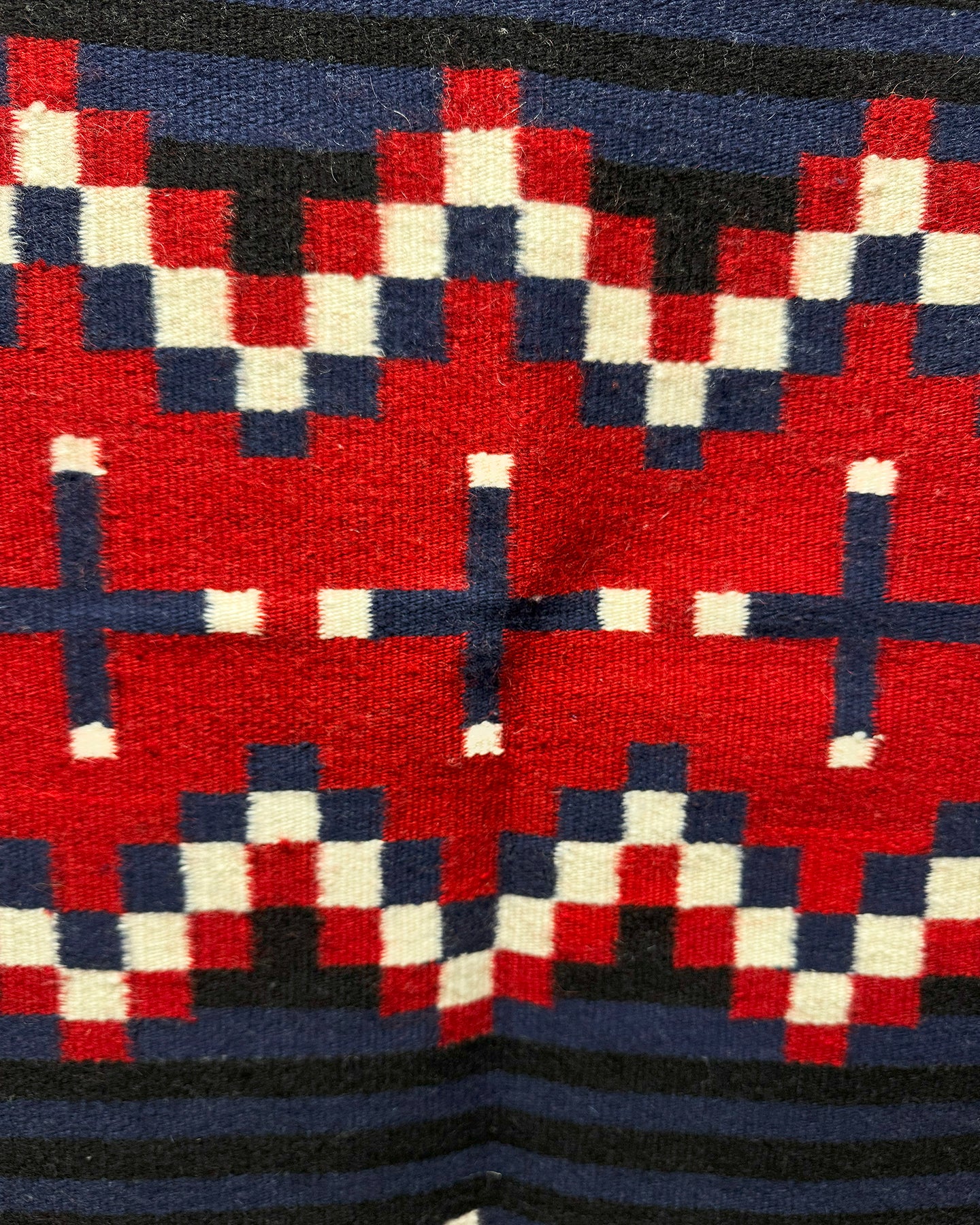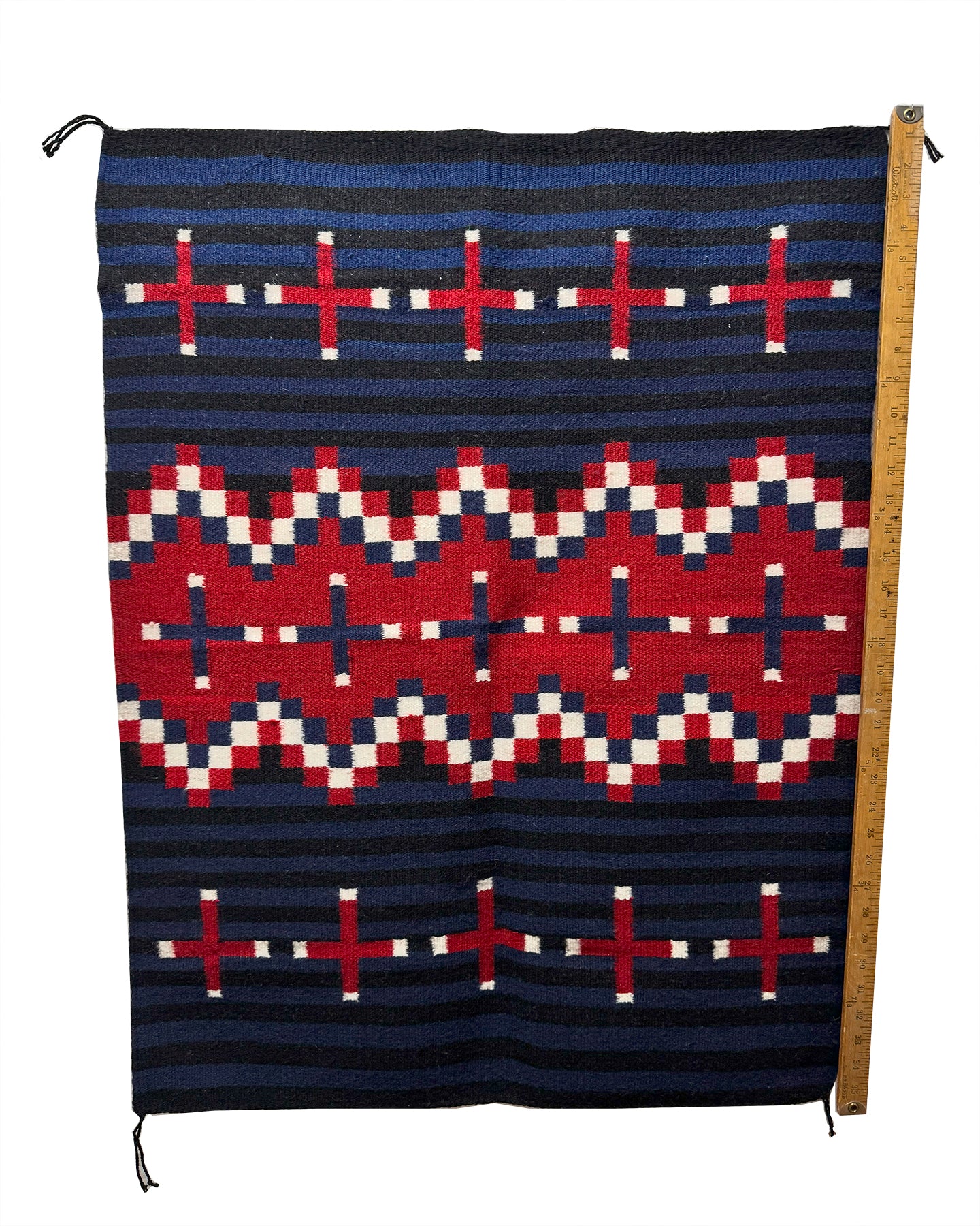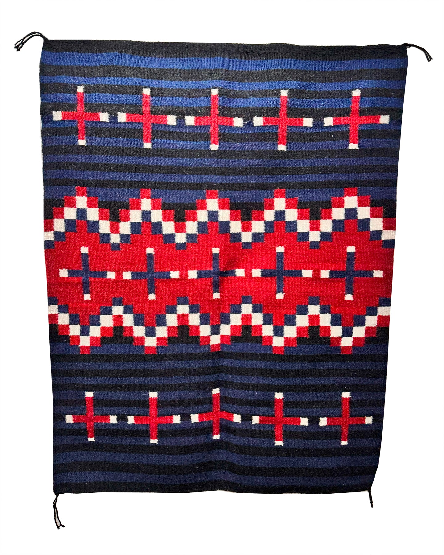 The Navajo would have a trade system set up with surrounding communities and distant communities that included tribes from the Plains. That is where most scholars feel they were introduced to the Chief Blanket, since the Navajo do not have Chiefs. The blanket is identified by phases, and the contemporary weavings borrow from all of those, plus the addition of freelance designs. We have a large collection of Chief Blankets on the online Trading Post so make sure you check them all out.