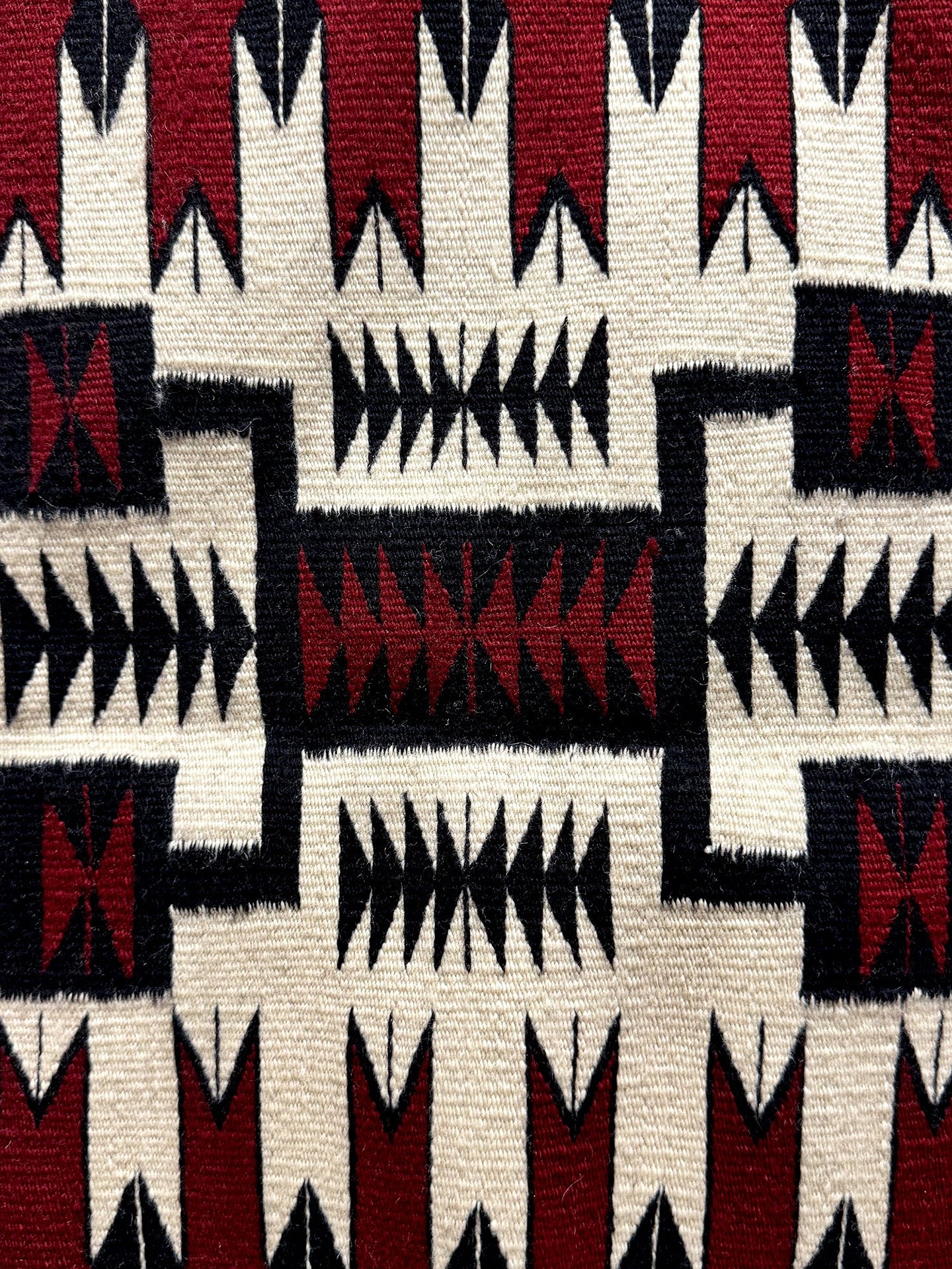 The Storm Pattern is a favorite among many collectors. This style of rug is filled with an amazing design that starts at the center and reaches out to the four corners of the weaving. You will also find the weaving filled with lots of other symbols. Storm rugs come in many different colors, and some of the most popular are done in those classic combinations like the Ganado Red. These are very impressive weavings, and it is not uncommon to find one of these in the 10 feet range.